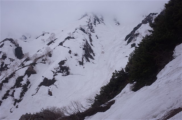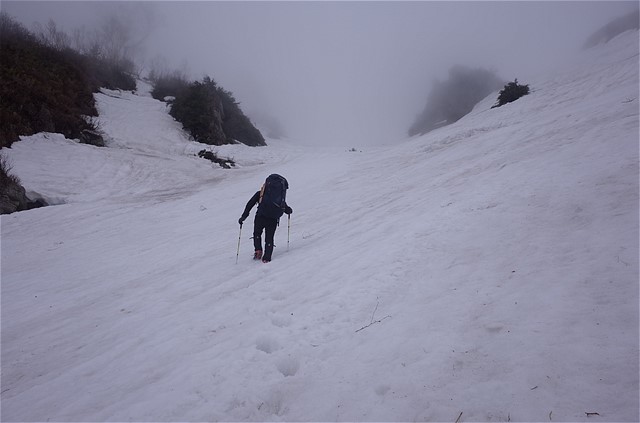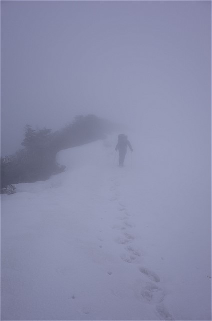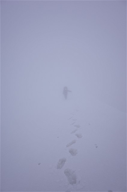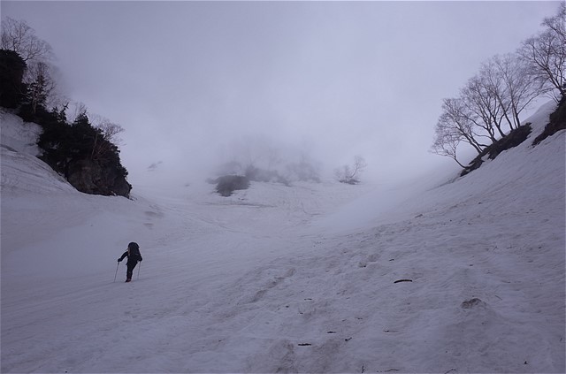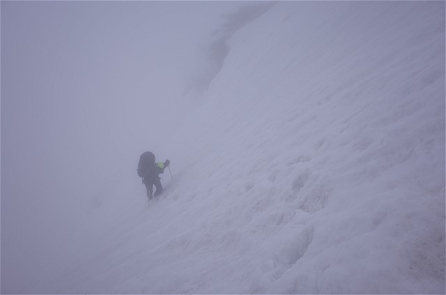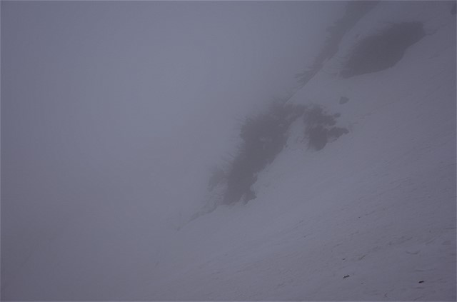 視界は数メートル。こんな状況で前情報のない谷を下降するのは相当な覚悟が要る。しかしエスケープルートはたくさんあるので、深刻には考えていなかった。