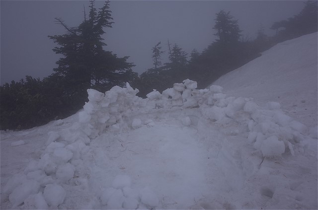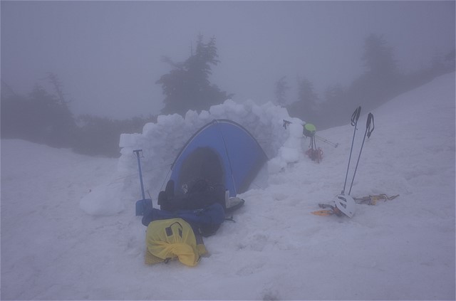 13:05 一日目の幕営地に到着。視界不良なので行動を早めに切り上げることにした。
