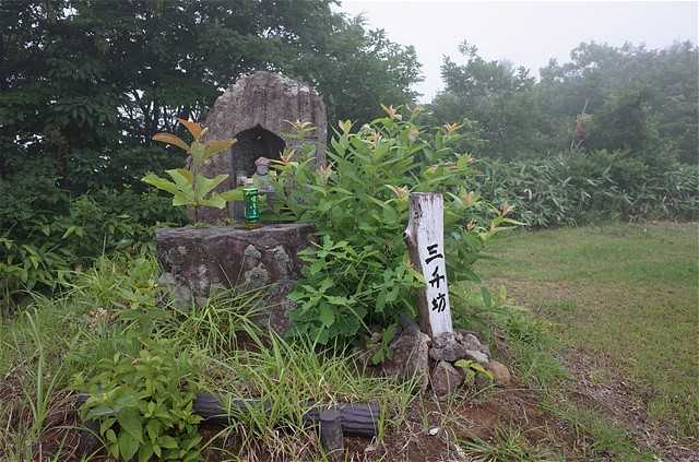 9:00 夕霧峠。ここで車道と合流する。水分補給。