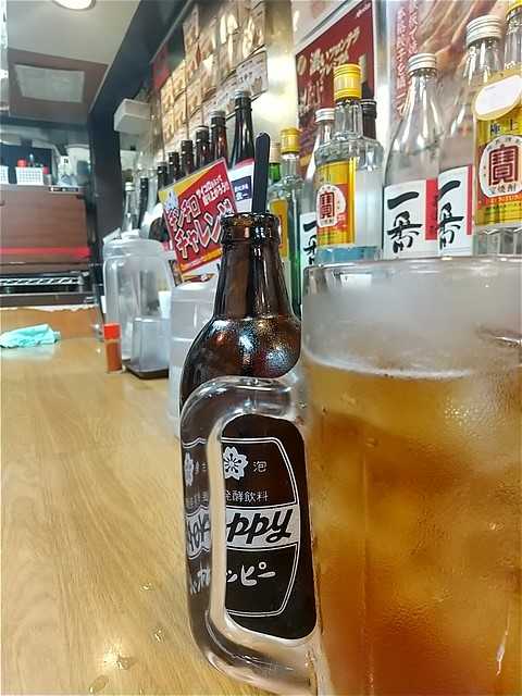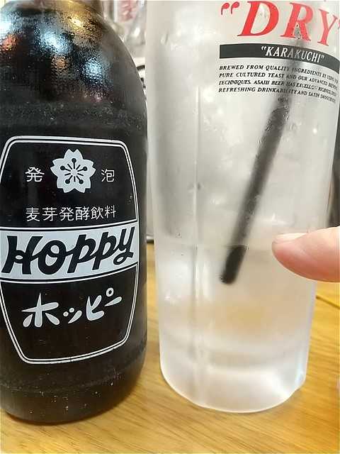 ホッピーひと瓶で、中焼酎を三杯飲むのが、やまやろうの流儀。ホルモン串は安くて美味しいので、個人的にはお勧め。