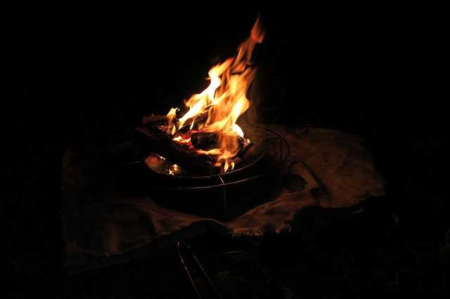 焚火の炎の形を楽しむための台ですね。焚火台の壁がないので、炎の全体を眺めることができる。