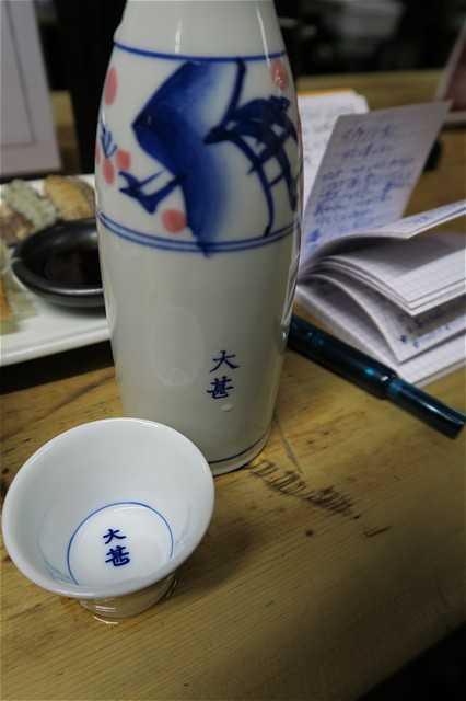 隣の客との距離は近い。勇気を出して話しかけてみれば、会話の花が咲くかもしれない。みんな黙々と酒と料理に集中しているのだが、それだけではちょっと寂しい気もする。わいわい語りながら飲むのが、大甚らしいとは思う。