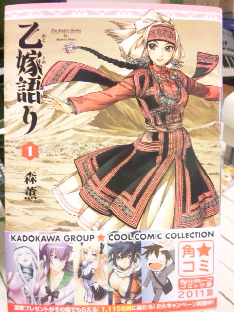 今日ようやく冬物をクリーニングに出しました(^_^ゞ 遅いよね ブルゾンとコート合わせて3着 ちょっと荷が降りてホッとしております 話は変わって、 相方と私はアニメとマンガとゲームが結構好きで 定期的に何か良い新作はないかしらと 本屋さんに探しに行きます 今日は買い物しにスーパーへ行くついでにTSUTAYAさんへ… 新刊出てないかな~、とコミックコーナーへ行ったら、気になる作品を発見 こちら、『乙嫁語り』 中央アジア地方の嫁さん漫画です(笑) 3巻が出たばかりだったようなのですが、はずれだと嫌なので、とりあえず1巻だけ買いました 当たりでした 世界観というか、珍しい生活模様や、美しい絵がたまらんです主人公も美人だし。 なんかシルクロードとか好きな人には持ってこいな作品ですよ 私も好きです、こんな所に行ってみたいなぁって思える作品。 ゆ~ったりとした雰囲気も良いです 続き買います。