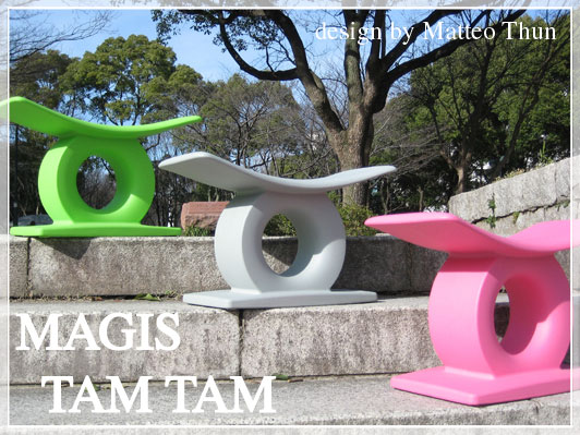 春はポップカラーで豪快な感じに、MAGISのスツールTAM TAMデザイナーはMatteo Thun室内で使う場合はスツールとしてよりも、オブジェとして見たほうがいいのなかなぁ、、子供部屋の机なんかにするのも案外おもしろい!?