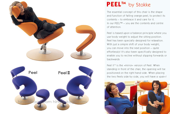 STOKKEのPeelですねデザイナーはOlav Eldeyかなり抽象的なモダニズムの様ですが、ヒントはオレンジの皮。そのためか、自然と調和する。 北欧モダンの秀作の一つ、競合としてはコロナチェアあたり、ナチュラルさを強調するならPeelの方がいいかな。