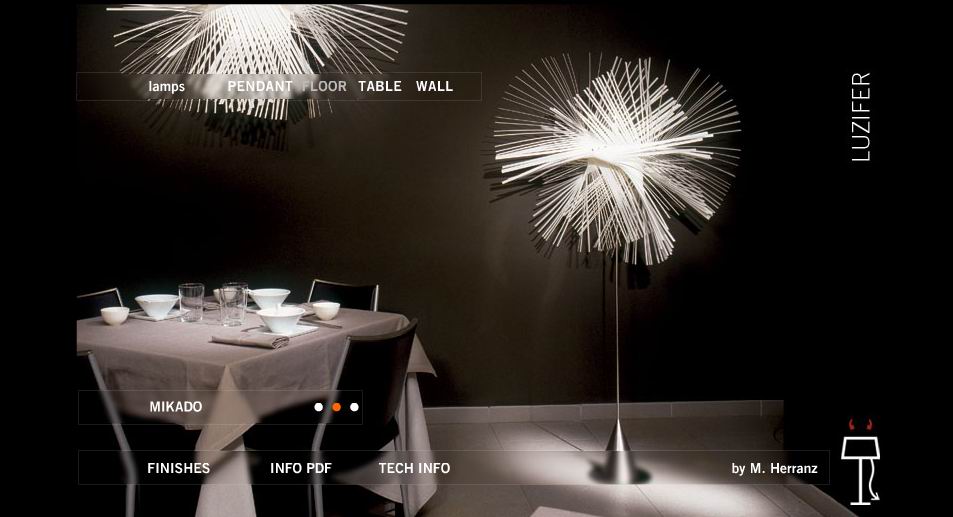 このデザインサイトは照明の紹介が少ない、一軒家ならともかく、マンション暮らしはあまり照明いじれないないので仕方ない・・・でも部屋の雰囲気を左右する大事な要素、テーブルとフロアライトは工夫したいところです。LUZIFERのフロアライト、Mikado デザイナーはMiguel Herranzこの人のサイト、官能的な赤が魅力的なデザインなので併せてチェックですね。踊り子が扇子を持って舞っているかのような鮮烈な印象を与えるフロアライト、北欧デザインとの相性も良さそうです。