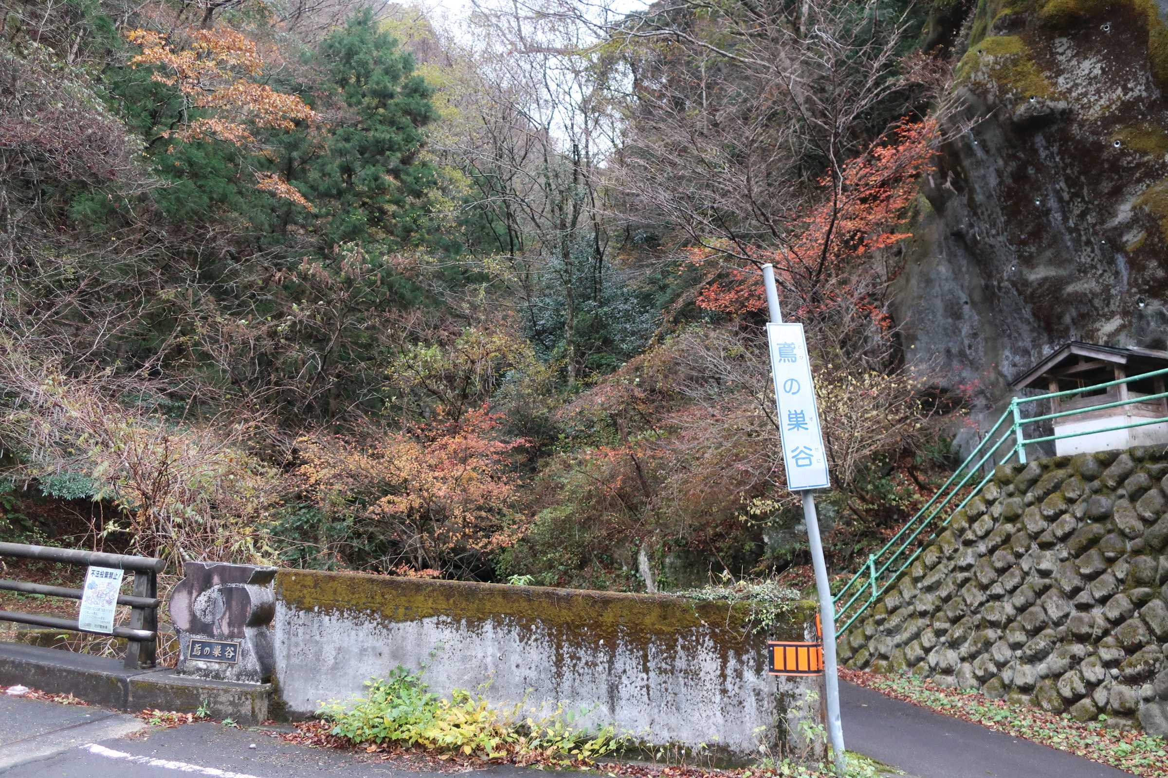 「とびの巣渓谷」徳島県三好市山城町の小歩危駅1㎞ぐらい北側に看板があります。