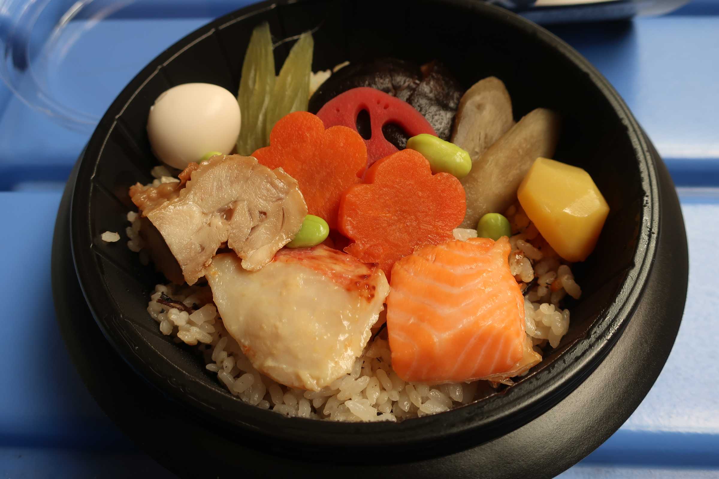 伊豆の贅沢釜飯(金目鯛のせ)を駅で買い食べました。