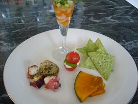 ある日のランチ・・・お友達が我が家にみえてランチです前菜(イクラとイカとキュウリの和え物・かぼちゃのバターソテー・蛸と帆立のジェノベーゼソースソテー・プチトマトとモッツアレラ・アボカドのチップ)カニグラタンチキンのトマトソース煮こみデザートはお友達ご持参のロールケーキでしたが画像撮るの忘れて食べてしまいましたお昼からをいただいておもいっきりおしゃべり女友達はいいですね~いつも食器洗いをしていってくれるのでとっても楽チンです