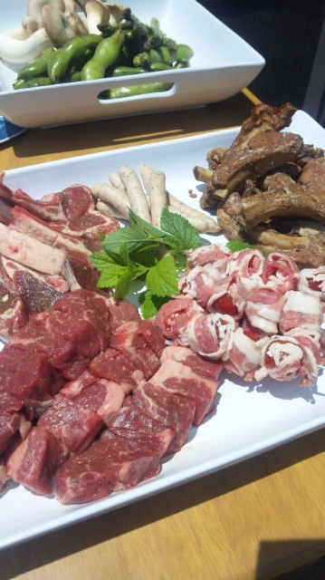 毎年恒例の我が家でバーベキュー女友達6人でお昼から( ^_^)/q□☆□p\(^_^ ) カンパァーイお外で食べるとなんでこんなに美味しいのかしら~なんて食べる!飲む!食べる!飲む!スペアリブはコーラとお醤油で煮たものミニトマトに豚のばら肉を巻いてお塩で・・・これは美味しかったわ~野菜はこんな感じ!そら豆を皮のまま焼いて食べると最高!鯛はオリーブオイルとレモンとお塩で頂きました「美味しい~」連発であっという間に骨だけに・・・このほかにもサラダと焼きおにぎりが皆さんのお腹に消えました^^最後はさっぱりフルーツでね食べて、飲んで、おしゃべりして楽しい時間はなんて短いのでしょう!来年のお約束をして解散またね~