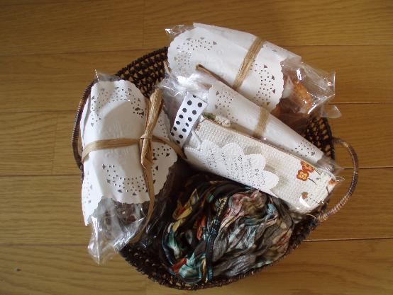 GWもあっという間に終わってしまいまた、普通の生活に戻ってしまいました中々更新できずにいましたがまた再開しますので宜しくお願いします交換会でも沢山の物が届いているんですがそれはまた後程紹介させて頂きます いつもすてきな手作りの品を作られているあにい@さんからこんなにステキな品々を頂きました夏に向けてダイエットでも・・・・と思っていた私になんとおからクッキーを気合を入れて痩せちゃいますよ~こんなきれいなラッピングでテンション上げ上げですおからクッキーだけでなく 手作りの花柄クシュクシュストールと2重ガーゼマスクも頂いてしまいましたストール大好きで花粉症(アレルギー)のわたしはもうさらにヒートアップです GWは大活躍させて頂きました 本当に本当にあにい@さんありがとうございましたお披露目中々出来ずにすみませんでした みなさんも是非あにい@さんのブログを拝見してみて下さいすっごくかわいい手作りのお品が沢山あります手作りとは思えない品々ばかりですよ~オークションでも買うことが可能ですから 必見です~