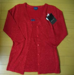 今日もまたまたステキなお洋服をお披露目させて下さいあれ1点交換じゃなかったけとびっくりするオマケを付けて頂きました私がブログを始めてまもなくの事・・・訳も解らず皆さんのブログをウロチョロするとはじめてコメントがそれが今回交換して頂いたふうたろママさんなのですなんだか、とってもうれしかったのを今でも覚えていますそして今回の交換して頂いたお洋服がこちら 仕事着がほしいな~なんて思いながらアタックをさせてもらいました 赤のラメ入りアンサンブルすごくキレイな色で7分袖でこれから大活躍間違いなしです そして 驚きのおまけがこちらのミリタリーシャツ普通にシャツとしてもいけるしアウターとしてもOKな感じのデザインになっていてステキですふうたろママさん本当にありがとうございました---------------------------------------------- まだ交換希望のお洋服たちありますので宜しくお願いしますフリーページへまだ画像を作れていないものが私信の中にありますんでそちらも是非お願いします