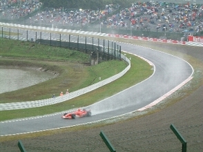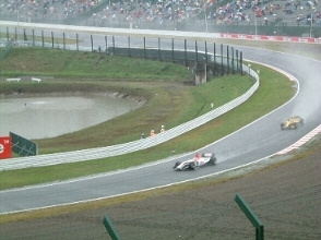 初めての土砂降りの中でのレース観戦。水しぶきを派手に上げての走行は見てて楽しいけど
