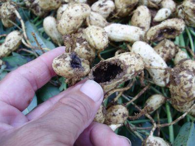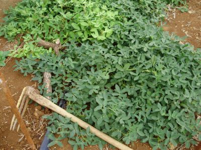 肥料の与えすぎ(ツルぼけ)でNGかそれとも大収穫か?落花生は掘ってみないとわからない野菜、クワを入れる瞬間は緊張しますね
