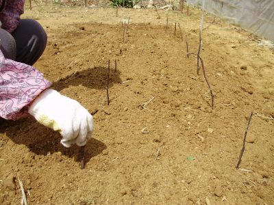 こんな風にしるしを立てておけば均等に蒔くことができますね