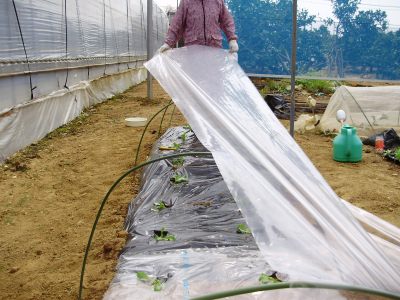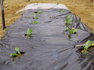 レタスに泥が付くとウリモノにならないのでマルチを敷きましょう