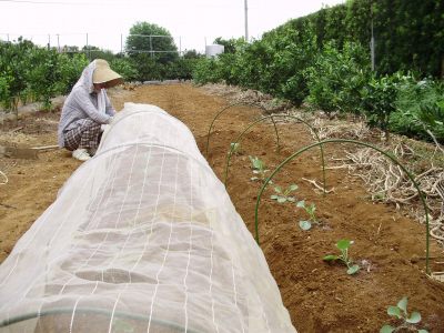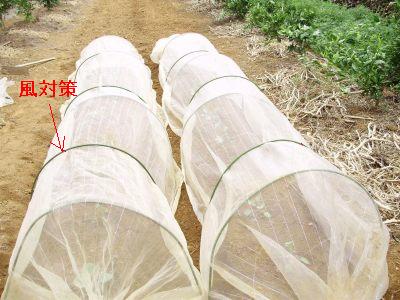 そのまんまではすぐムシにやられちゃうので防虫ネットでキャベツを保護
