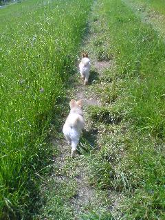 天気が良かったので、ちょっと遠出して土手へ散歩に行って来ました。^-^土手の下の方では、親子連れがキャッチボールをしていたり、学生達がサッカーをしていたり…。気持ちのい~散歩日和の季節になりましたねぇ~。ふふふふふ。 オマケでこの余分な贅肉が落ちてくれれば言う事ナシだのになー。T-Tどっかの有名な人が『現代人は犬に散歩をしてもらっている』って言ってました。確かに…ワンコ達がいなかったら、わざわざ散歩なんかしないもんなー。しかも、かなりの競歩・・・競歩・・・そして競歩。感謝(?!)しなければ…?