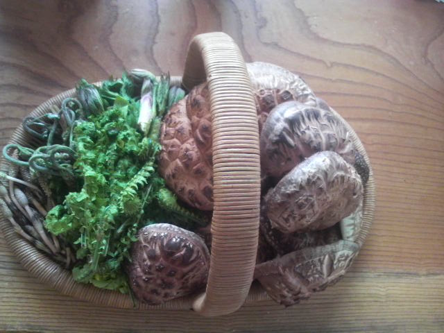 林のフキノトウもあっという間に葉が出たかと思うと、コゴミやぜんまいが一気にふきだしたかのようです。草ソテツの新芽の「コゴミ」も一日二日と葉がどんどん開いていくので、見つけたそばから山菜として摘んでいきます。コゴミの時期の終わりごろには、夏の柔らかな葉ために、中の芯の部分を残しておきます。ウドの芽やヨモギ、ジャリのひいてあるところには土筆も顔を出しました。そして、雨が降ったり暖かくなったりを繰り返して、椎茸のどんこもどんどん大きくなってきました。ここ2日の晩御飯は、椎茸づくしです。椎茸は石づきの部分の茎をとって、芯の部分に包丁で小さな十文字の切り込みを入れ、上に軽く自然塩をまぶして、フライパンで傘を下にして焼いて(ひっくり返さず)いただきます。グルメな友人から教わった食べ方ですが、確かに椎茸そのもののうまみがじっくりと出て、シンプルでとてもおいしい食べ方だと感じています。形の悪いものや大きすぎるものは小さくスライスしてマリネや、4つ割りにしてオイル炒めや天ぷらでいただきます。つくしやウドやヨモギの新芽は、アクも少なく、量もそれほどないので、全部天ぷらです。朝から食べ物談義になってしまいましたね