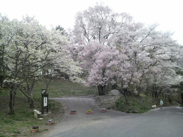 水曜の午前中はラフタークラブでの通常の笑いヨガをして、午後は春の恒例のお花見会でした。この日の参加は17名で、そのまま参加者全員でいくつかの車に相乗りしてお花見に出発しました。さて、冬の間東京住まいのSちゃんMちゃんご夫妻とHちゃんたちとの、八ヶ岳での久しぶりの再会に、みんなの気持ちはウキウキです。また、過去の術後の副作用で入院していたEちゃんも、退院後の初参加に、みんなの退院祝いの気持ちもあり、おのずと場の空気も華やぎます。今年のお花見の場所は、例年の蕪の桜ではなく、谷戸城跡公園。八ヶ岳ラフタークラブの部長のSちゃんが前日に下見済みをしてくれた、お勧めのスポットです。写真は公園の北側の入口付近です。桜のアーチと花のトンネルがお出迎えしてくれました。起伏にとんだ城跡の公園は、先に何があるのかわからないので、散策していても楽しく、ワクワクしながら進みます。八ヶ岳ラフタークラブのメンバーの一人Yちゃんが自主的に幹事をして、おいしいお花見弁当を注文してくれました。食事時は、おいしいお花見弁当をいただきながら、、おしゃべりに花が咲きます。食後のデザートとして、お料理名人のHちゃんお手製の3色おはぎが、デザートとして1個づつ配られました。我が家からは無農薬いちご。3パックを分けて一人2個づつ、かわいらしいおやつになりました。ちょっとづつでも、みんなでいただくと満足感が違いますね。Sちゃん差し入れの殻つきピーナツと、我が家にあった豆菓子の小袋入りの差し入れに、思わずKちゃんは、お酒が欲しくなった様子でしたが・・・残りをお持ち帰りしてもらい、自宅で楽しんでもらうことにしました(笑)1時に約束があるCちゃんはお弁当を食べて直後のお帰りで、写真好きなYちゃんは境内を撮ってまわっています。あいにくの春霞で山もぼやけていましたが、よく見渡せる場所にある城跡なので、当時の城主やその周りの人々の、山を眺めながらの春の宴の様子がしのばれるようでした。
