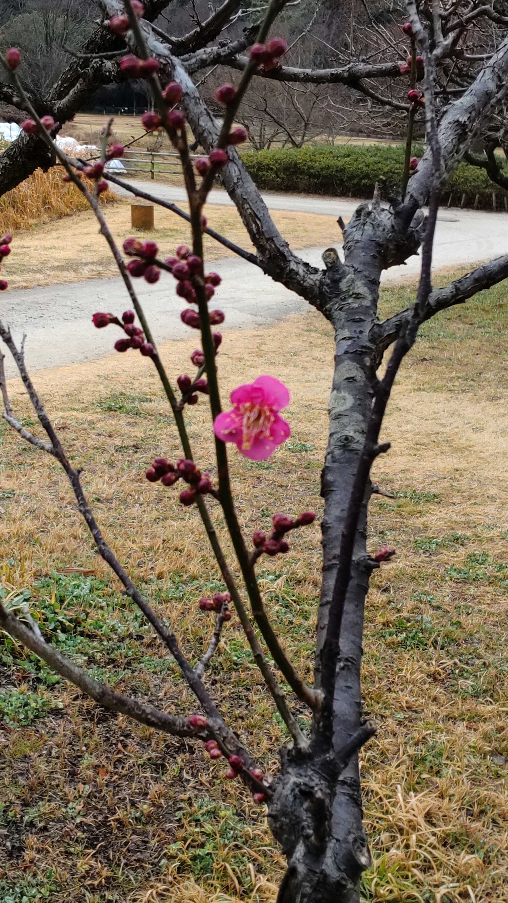 1月3日(火)正月3が日の最後の日です。千葉は雲一つない快晴です。箱根駅伝の復路が8時スタート。往路優勝の駒澤大学がリードを保ち総合優勝です。大東文化大、順天堂大、青山学院大に続き4校目の3冠を達成しました。驚きは大八木監督が勇退する話題。今後は田澤廉のパーソナルコーチになるようです。田澤もトヨタ自動車に所属するもののトレーニングは大八木監督と行うとの事。そんな事もありなんですね。まあ、田澤の世界での活躍を期待します。レースは中央大学が善戦し2位。古豪復活です。青山学院は山の登り下りで失敗して自滅した感じです。でも3位まで盛り返した岸本はさすがの走りでした。もう来年が楽しみです。100回記念大会で全国の大学も予選参加できるそう。中継が終わり、ジョギングへ。途中で広大な「21世紀の森と広場」へ寄ってみたらビックリです。20本くらいの梅林がありますがその中の1本がほころんでる。早生の品種なのか、変わり者の梅なのかはわかりませんが芳香を放っています。今後も時々様子をチェックします。こちらは蝋梅。ピンボケで失礼します。菜の花畑はくたびれていました。