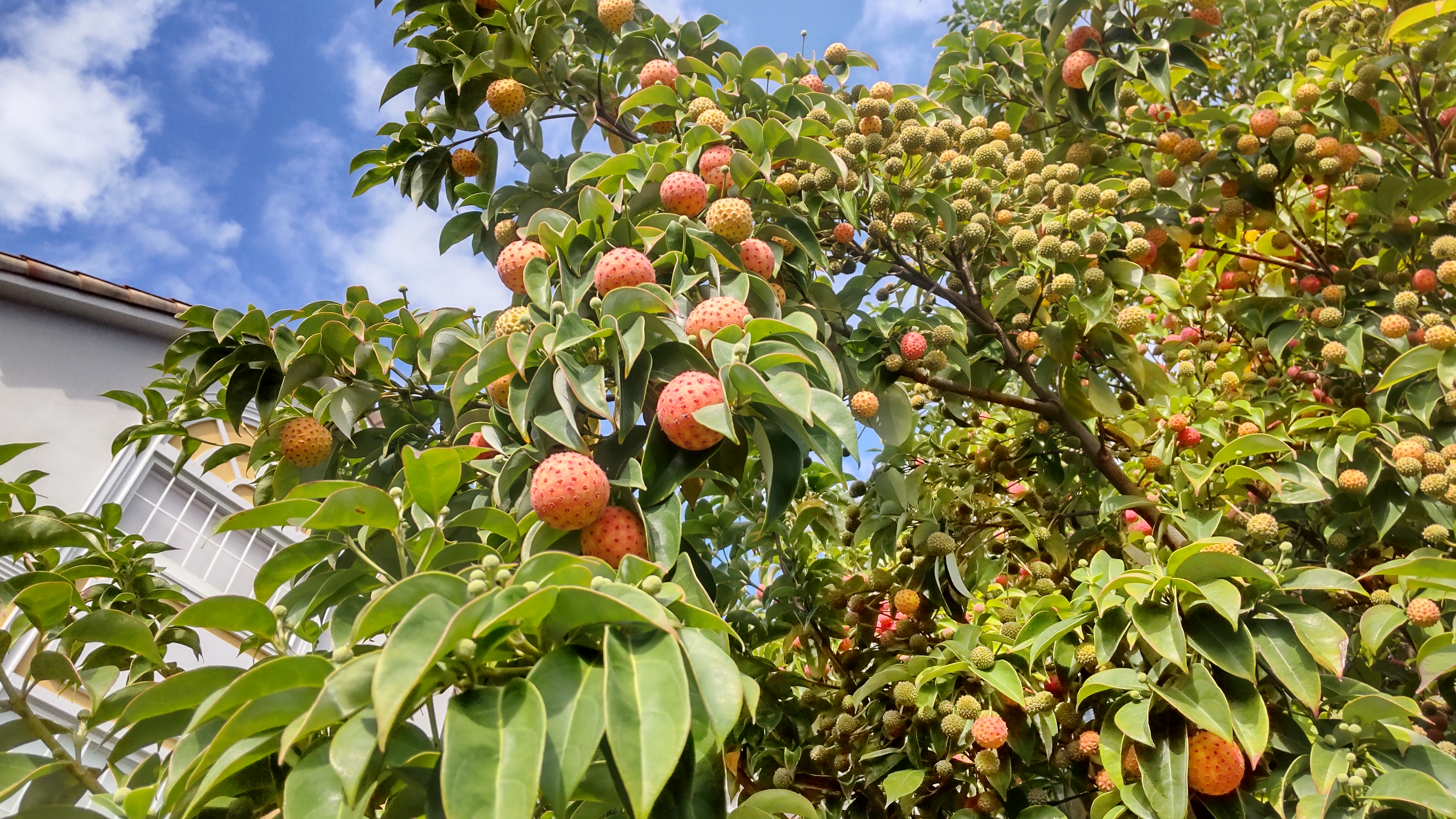 11月5日(火)朝のお散歩ジョグで見かけました。下の写真3枚です。調べたら、ヤマボウシの実だと。てっきりハナミズキと似たような赤い小さい実だろうとばっかり思っていました。両者は花は白い花で似ているので勝手にそう思いこんでいました。この実は食べると甘いとか?人の庭にある木なので泥棒になっちゃいますので取りませんでした。銀杏並木も色が付いてきました。良い感じです。さて、連休中はいろいろとスポーツがありました。大学駅伝は國學院が初優勝でした。これで箱根での3冠を狙えます。強くなりましたねえ、ここ。プロ野球の日本シリーズはセリーグ2位の横浜DeNAが優勝。なんでも、ソフトバンクの小久保監督の一言で火が付いたとか。高校サッカーやラグビー、駅伝も地方予選がたけなわです。地元の千葉県ではサッカーで競合の市立船橋が準決勝で日体大柏にPK負け、残念です。ラグビーでは流経大柏が30年連続優勝との事。スゴイです。次の日曜日からは大相撲の九州場所が始まります。さて今場所は誰が優勝するのでしょうか?尊富士は幕内に復帰しました。活躍してくれないかなあ。こちらは公園内の田圃の天日干しの稲です。昔のようですね。