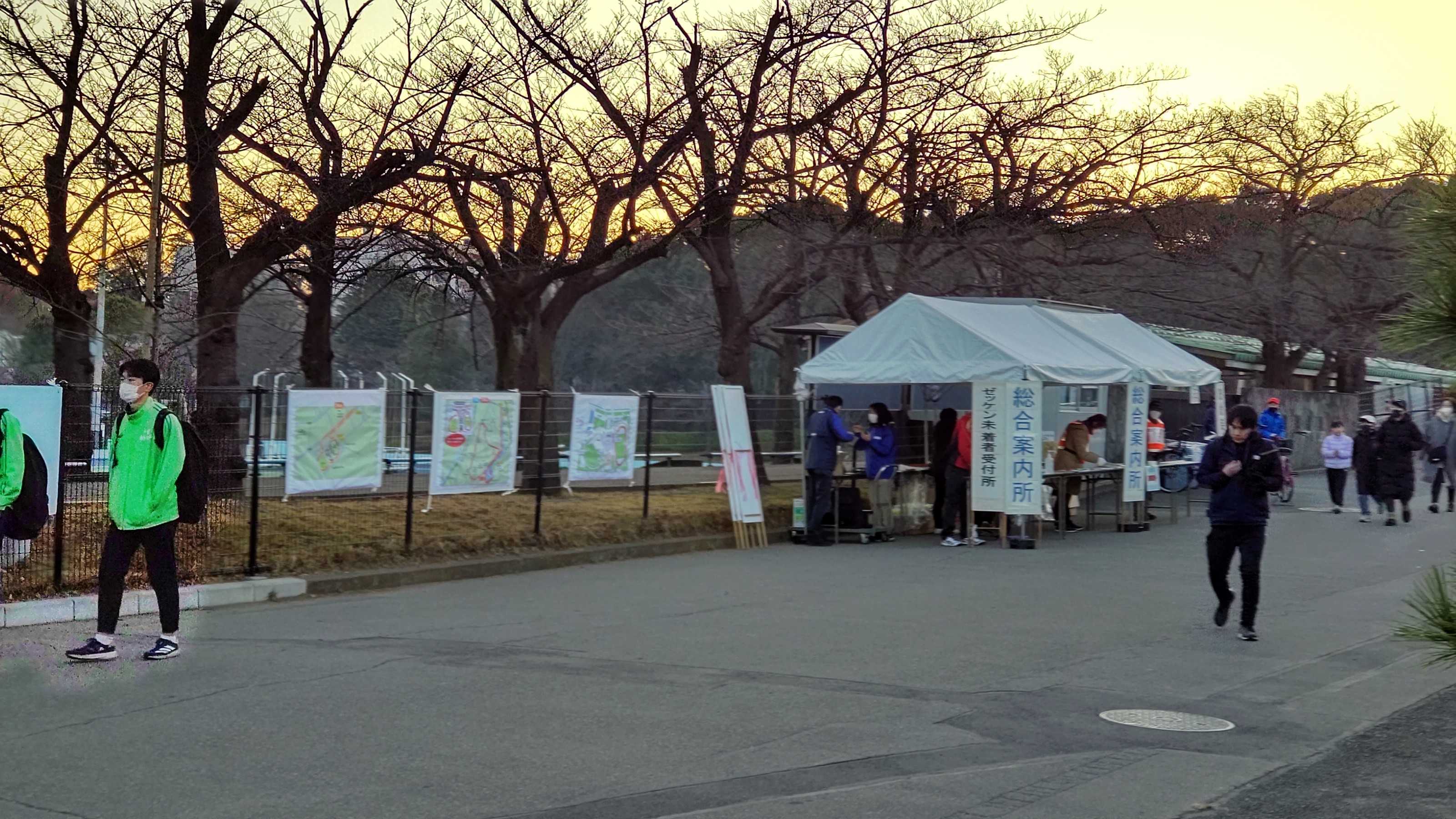 1月8日(日) それにしても65回とは歴史があるのですね。5kmと10kmのコースがあります。エントリーは昨年10月に既に終了。スタートとゴール地点の運動公園に立ち寄ってみました。7時ですがもう準備で人が集まっています。スタートは9時過ぎのようです。私も、来年も元気で生きていたら参加してみようかな?61歳でレースデビューも悪くないかな?