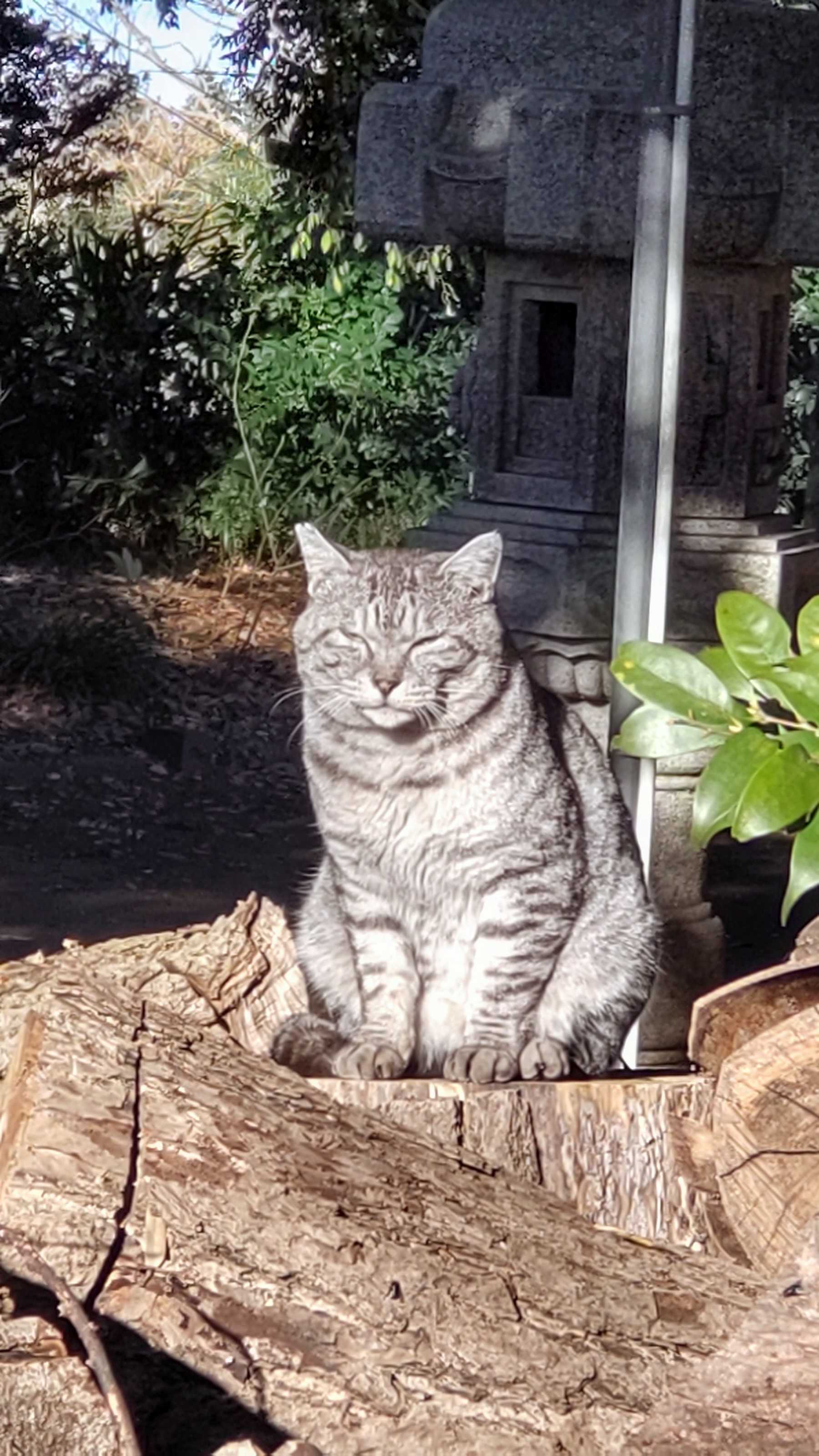 去年の秋まではマロと言う名の茶色の老猫が狛犬のように鳥居の脇に佇んでいました。