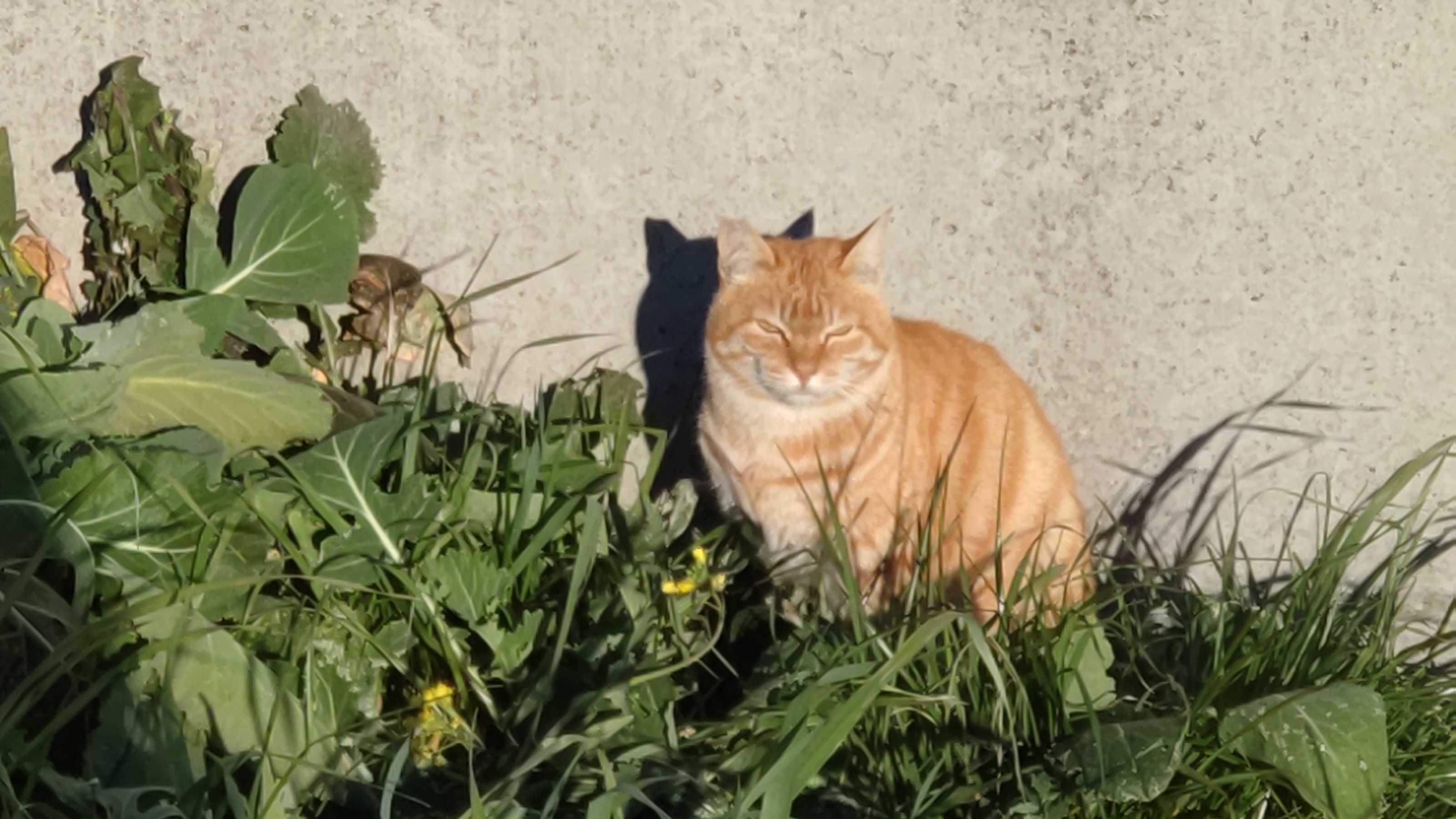 ニャン達は日向に出て、それぞれが日向ぼっこです。