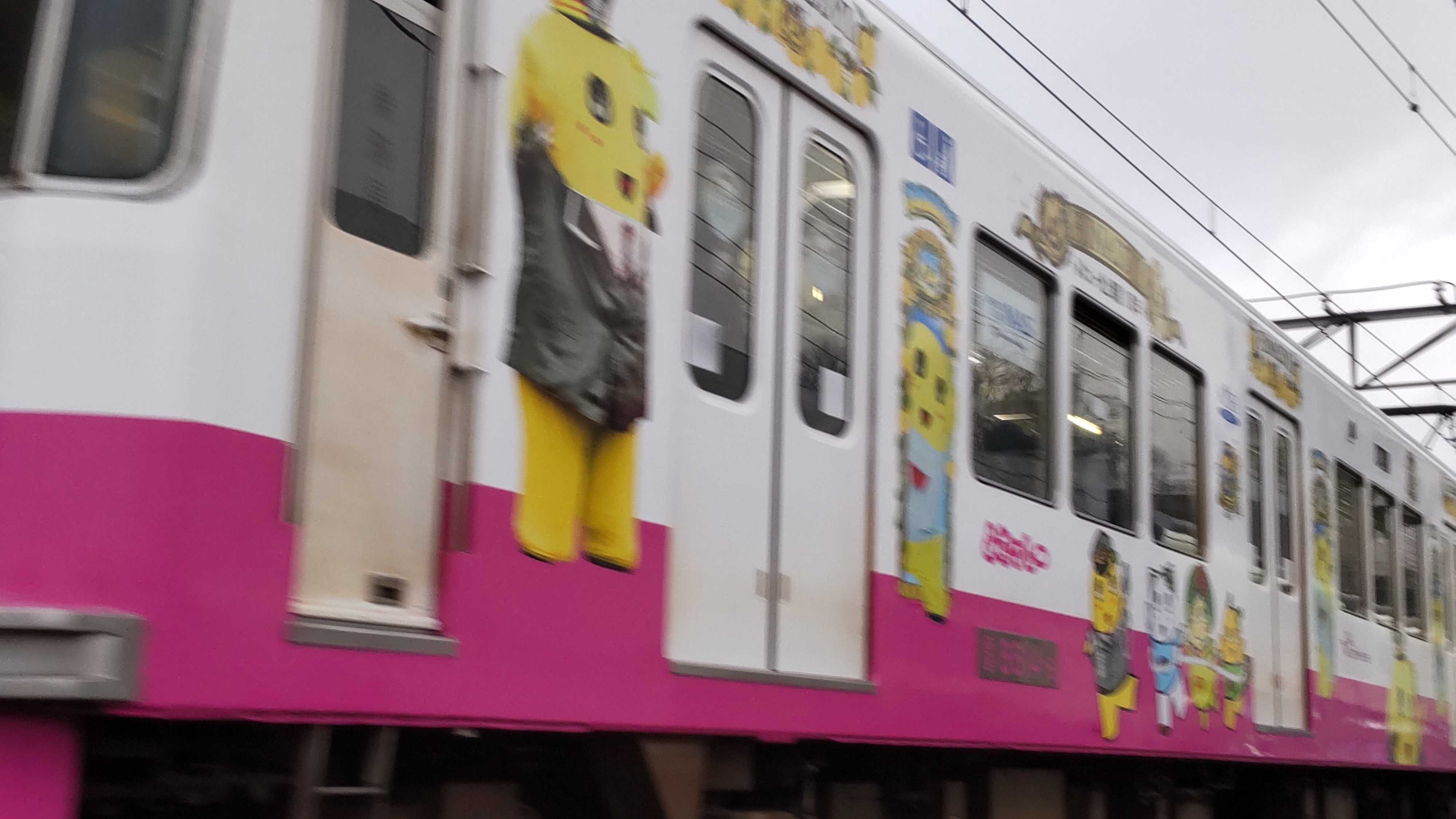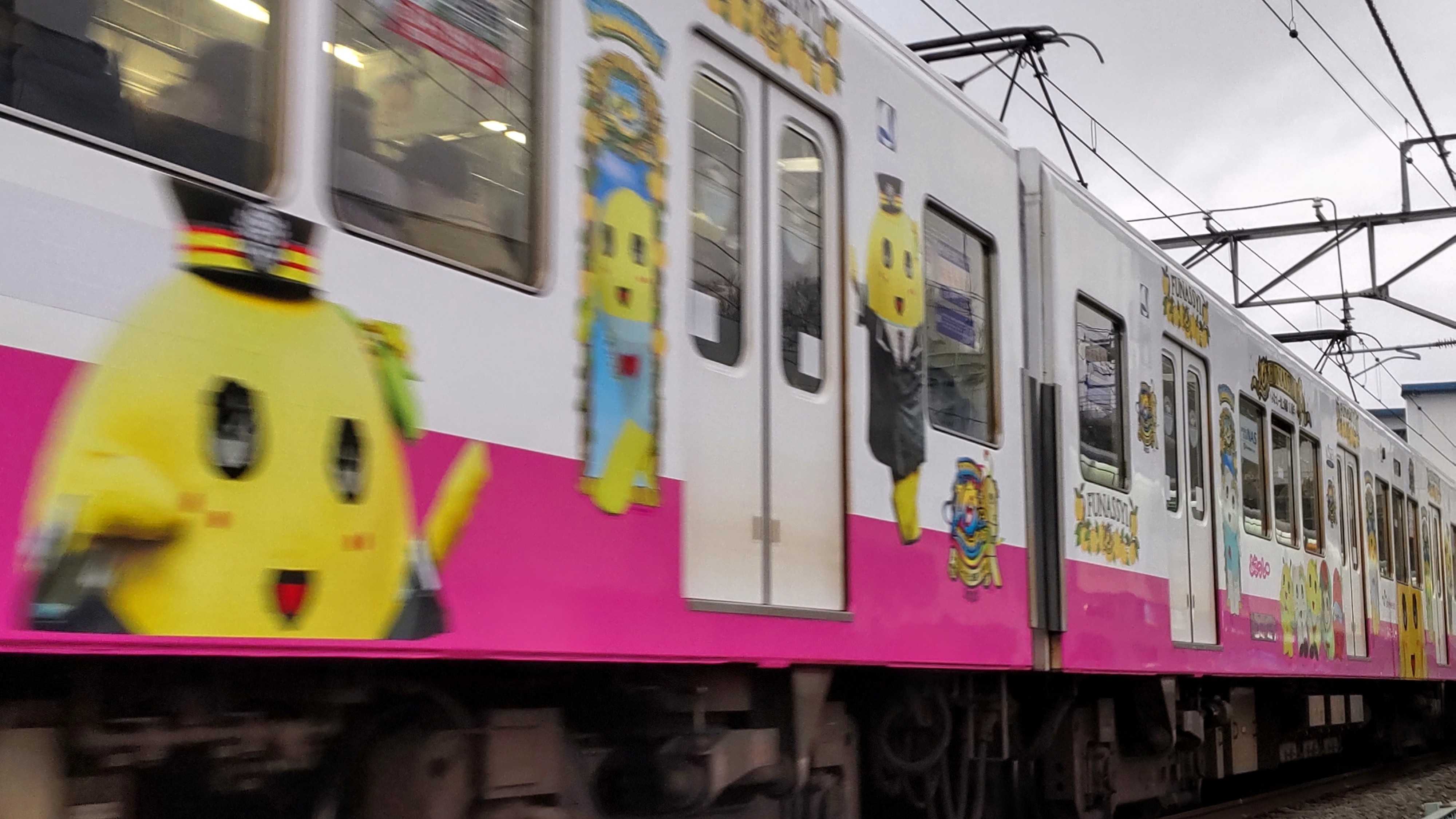 で、今朝は新京成線沿いをジョグしてたらふなっしーをラッピングした電車に会いました。
