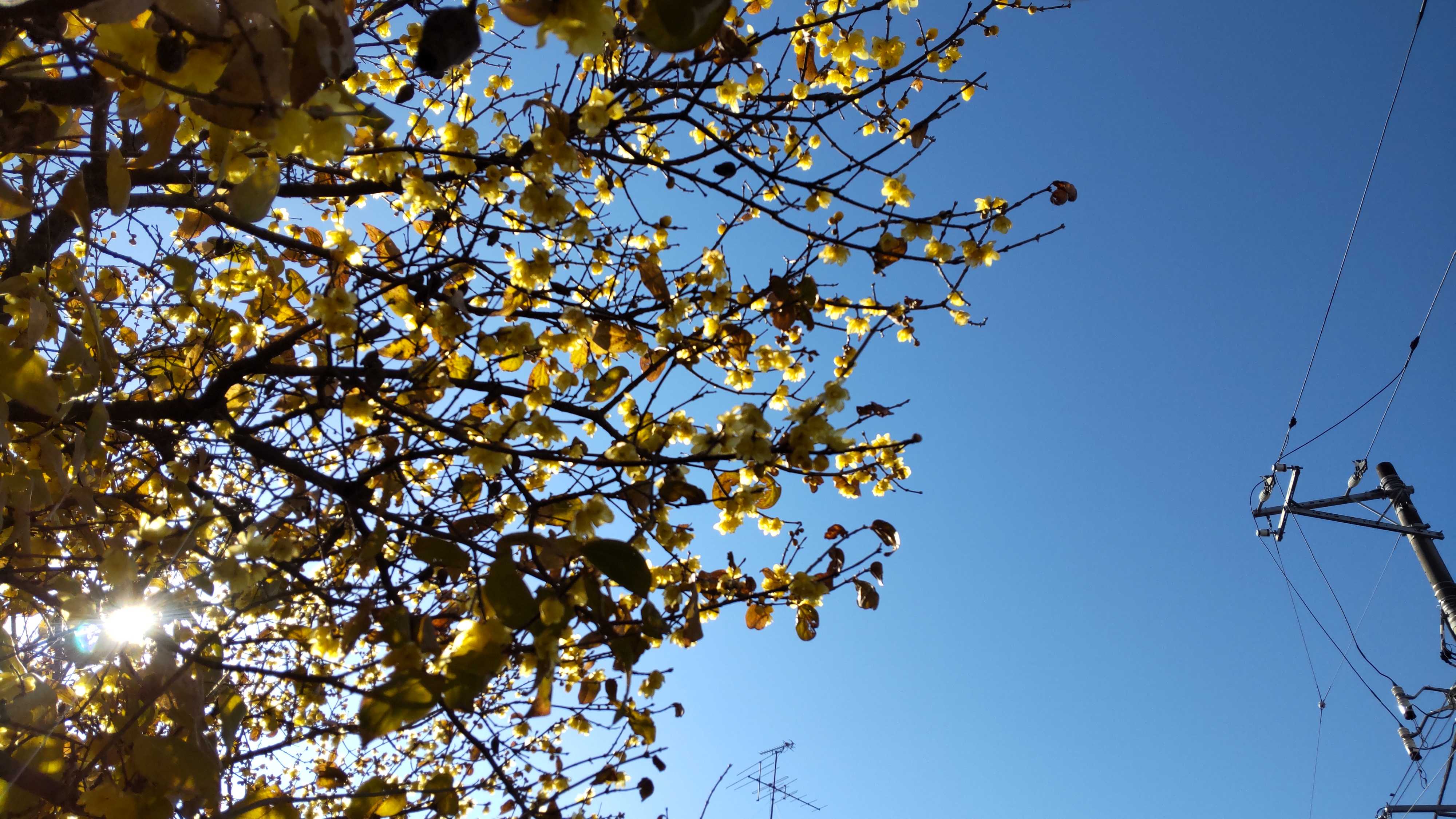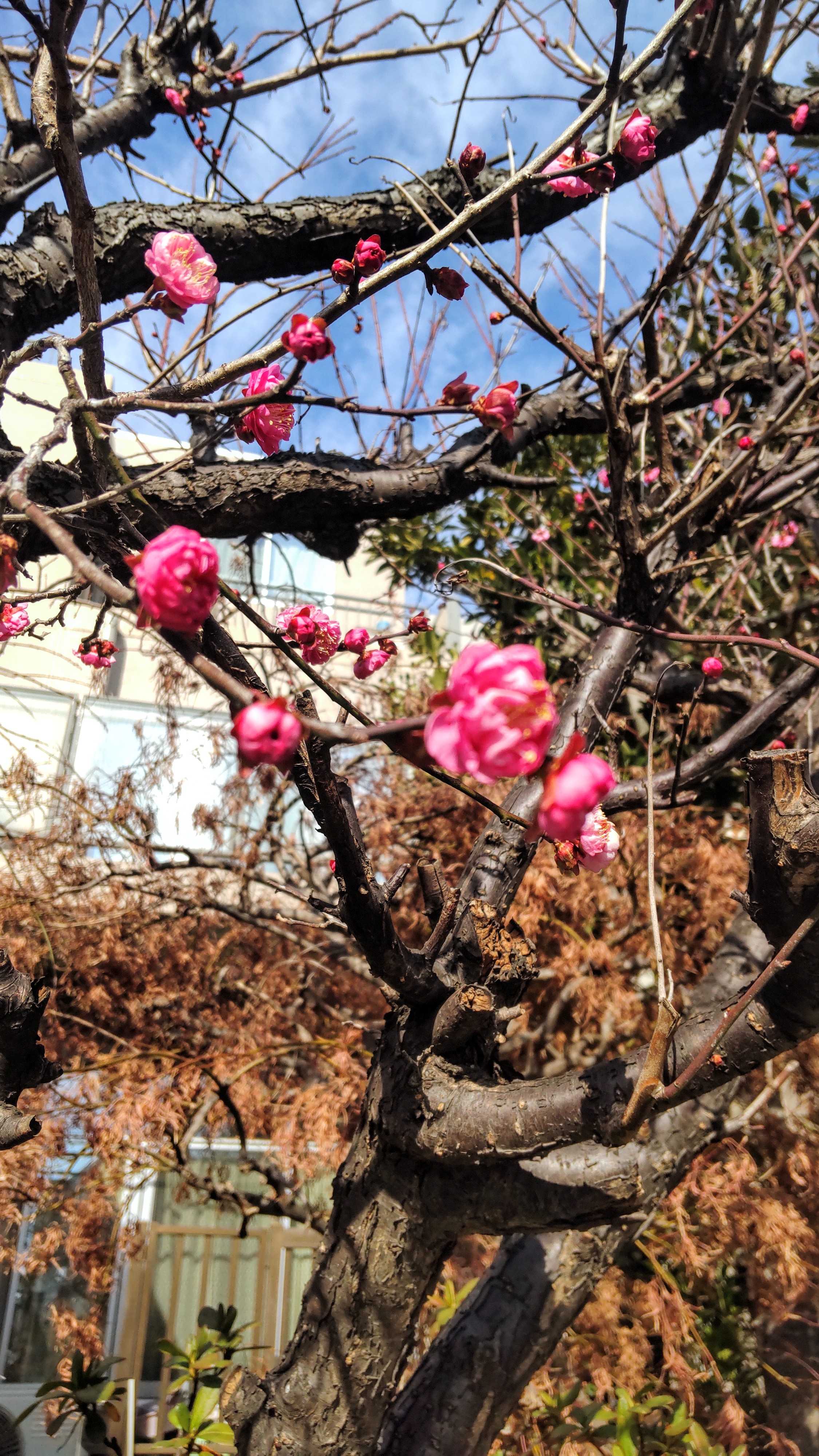 そして、今日の散歩では梅の花が咲いているのを見つけました。