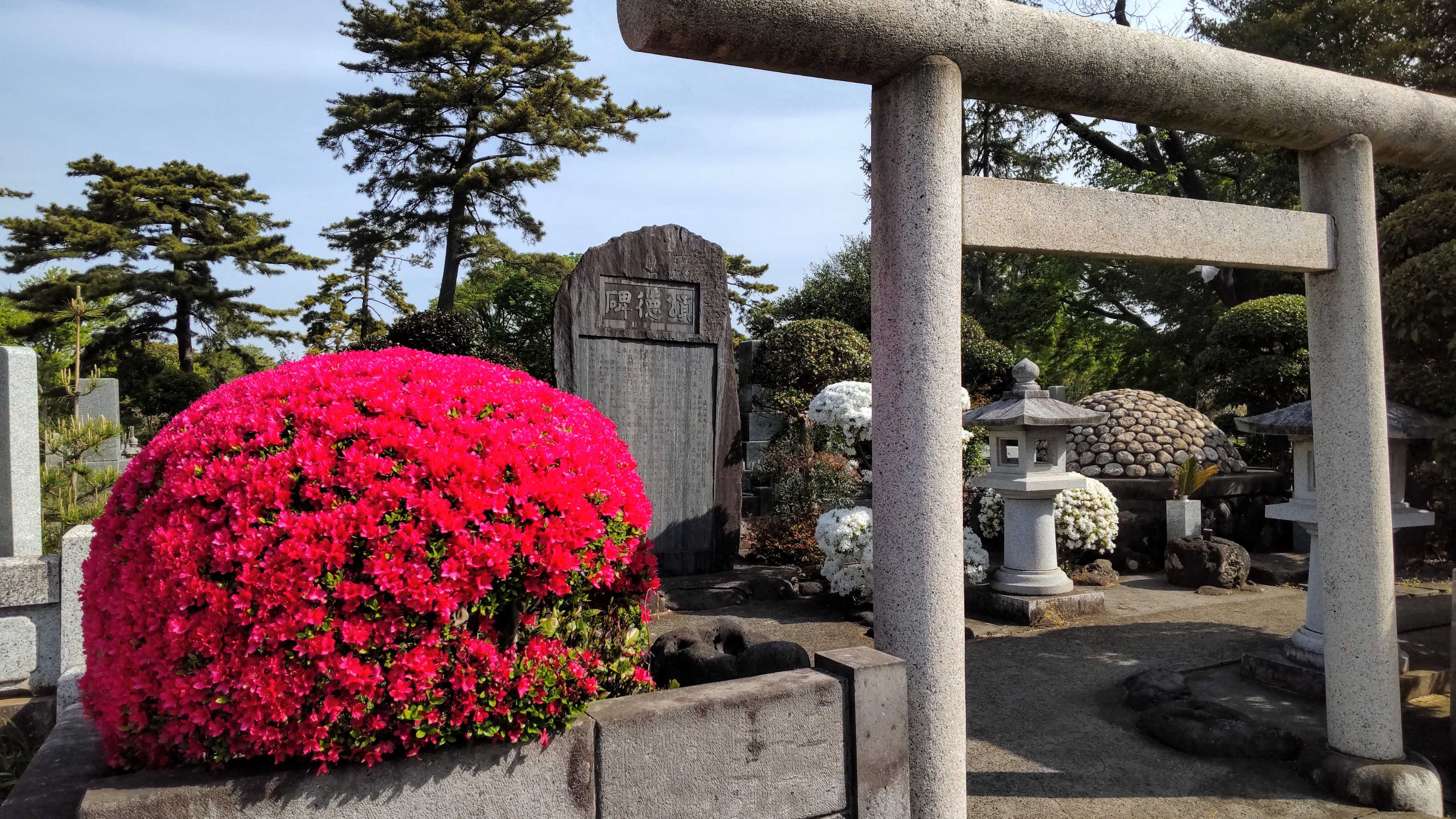 嘉納治五郎さんのお墓も綺麗です。鳥居があって神社みたい。