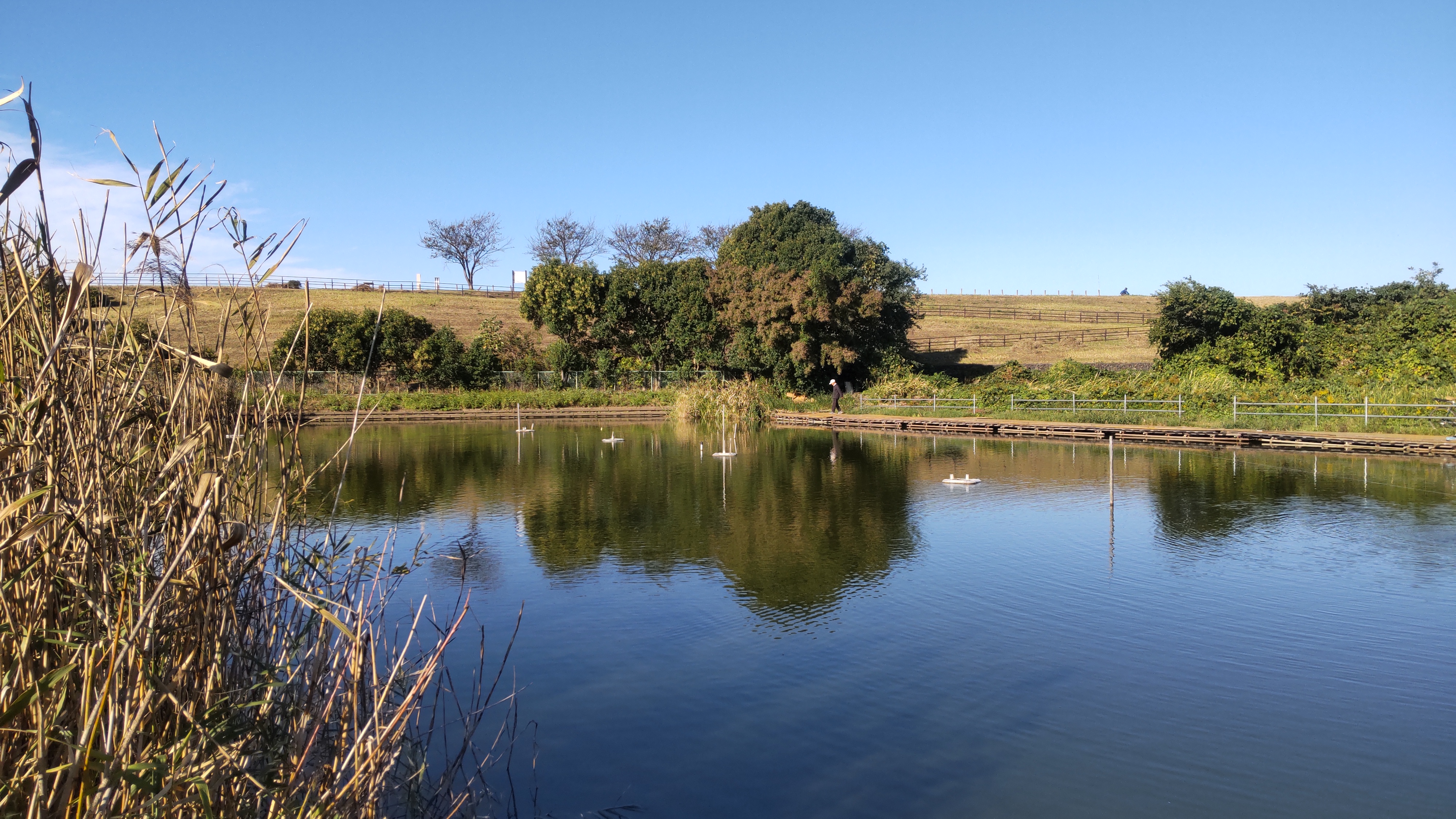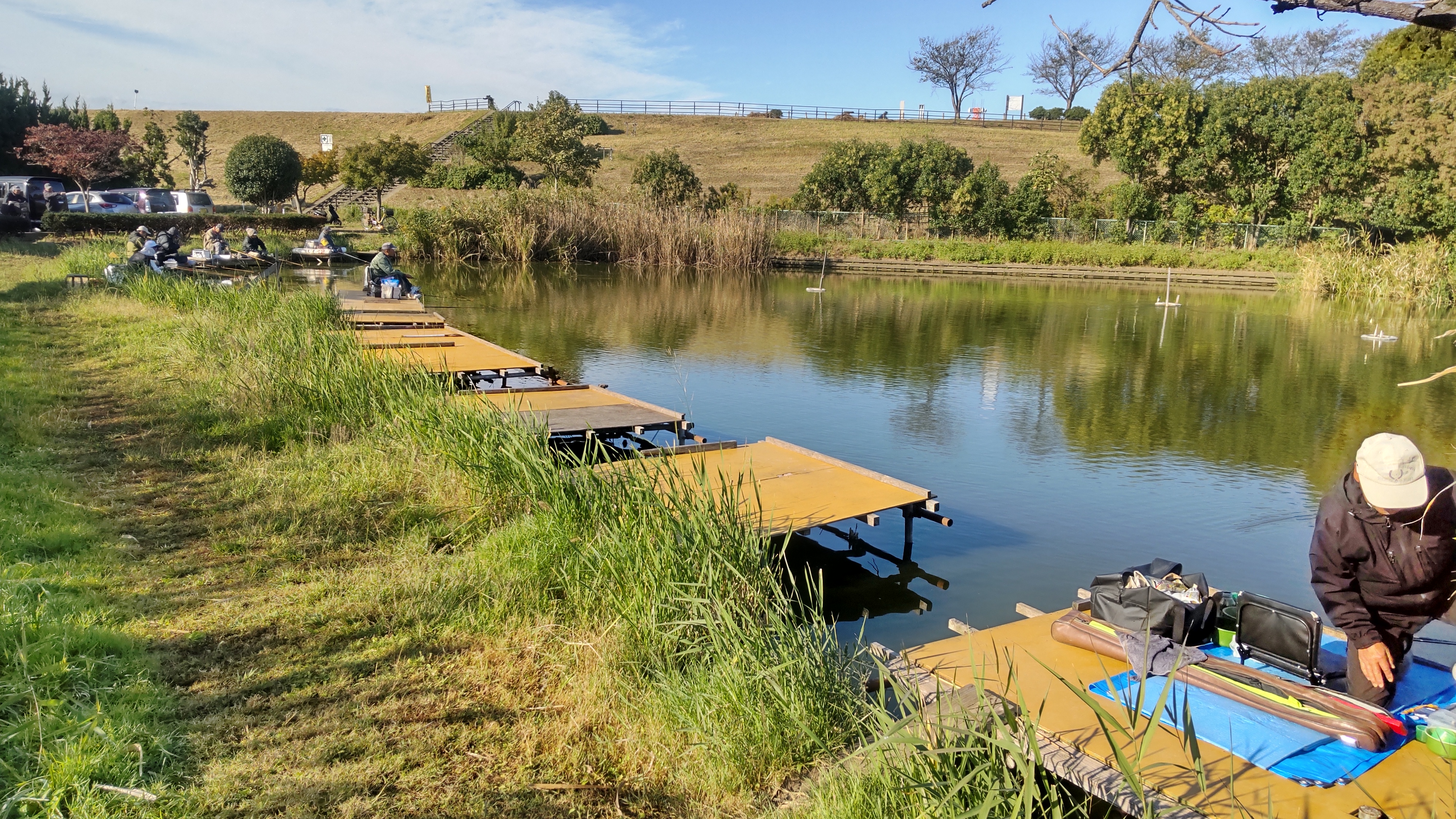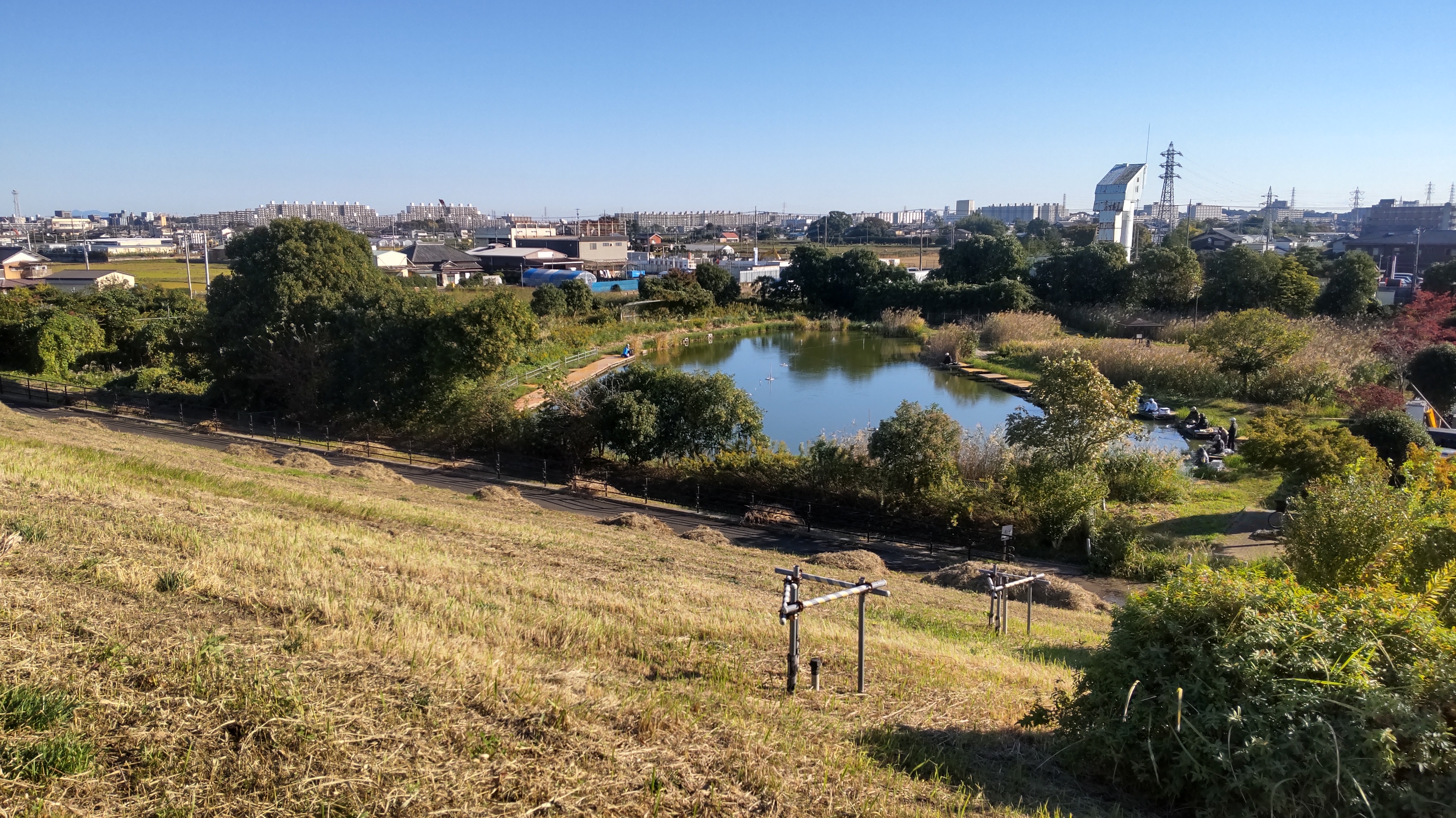 写真は江戸川の土手から写したヘラブナが居る池です。
