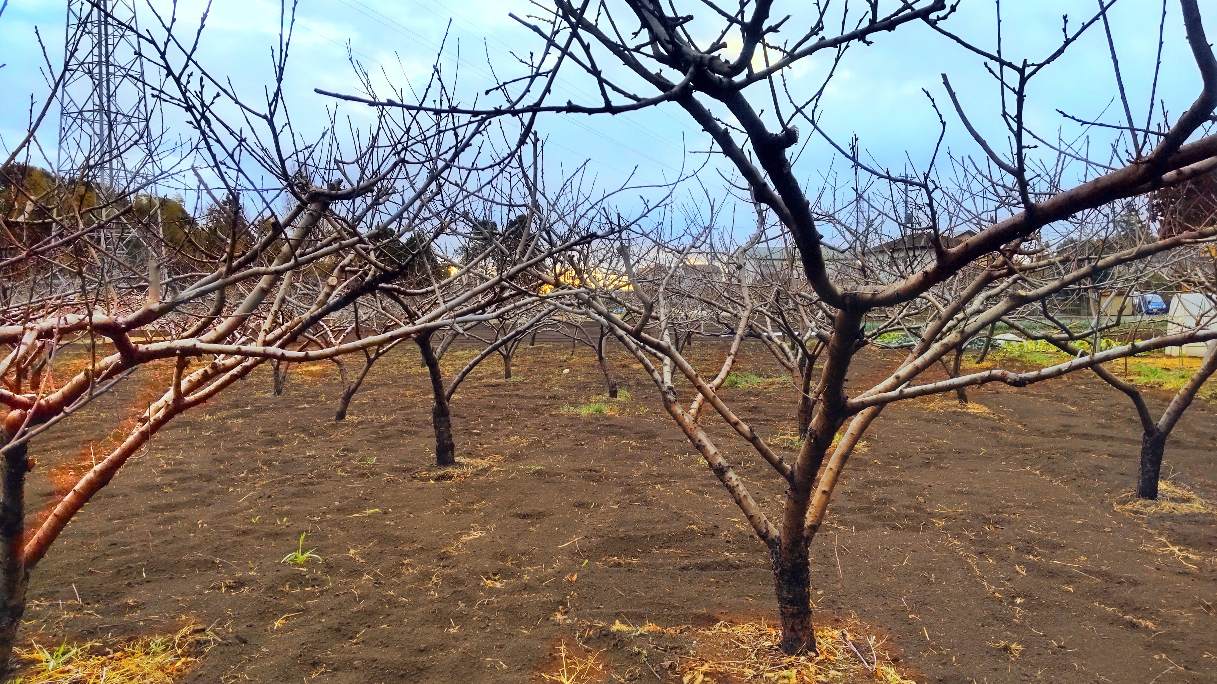 ここからの写真は去年発見した桃畑の今朝の様子です。