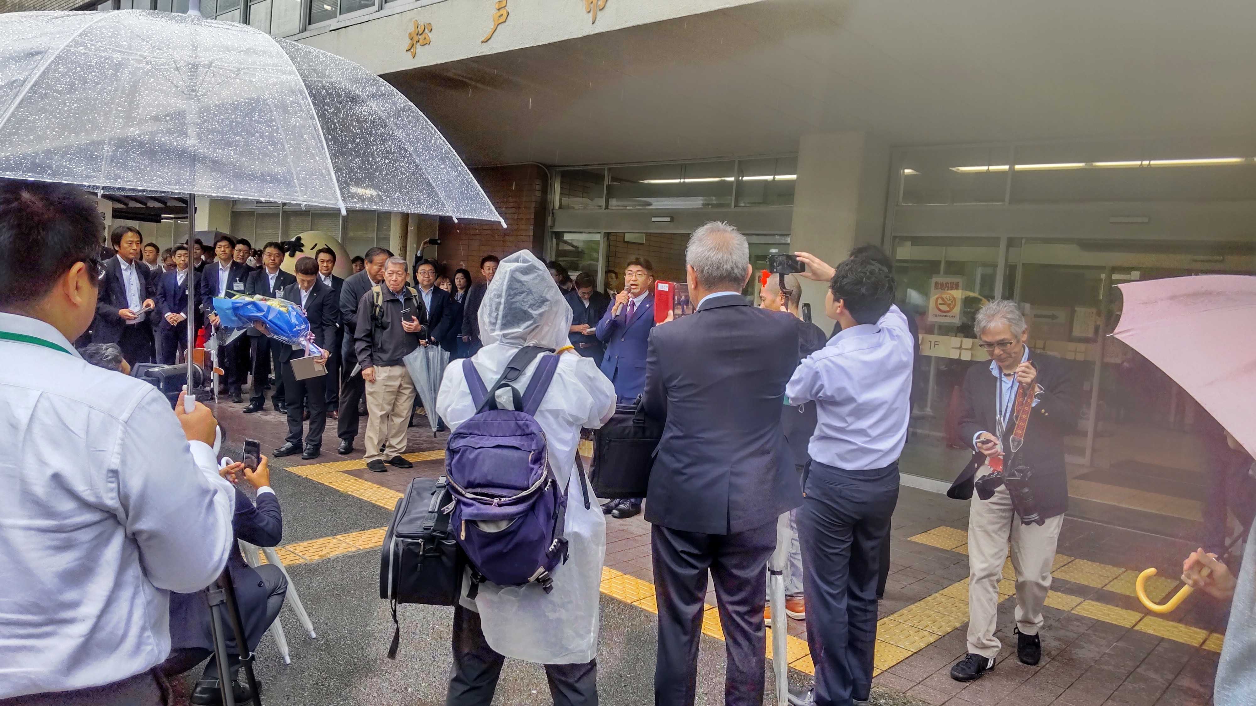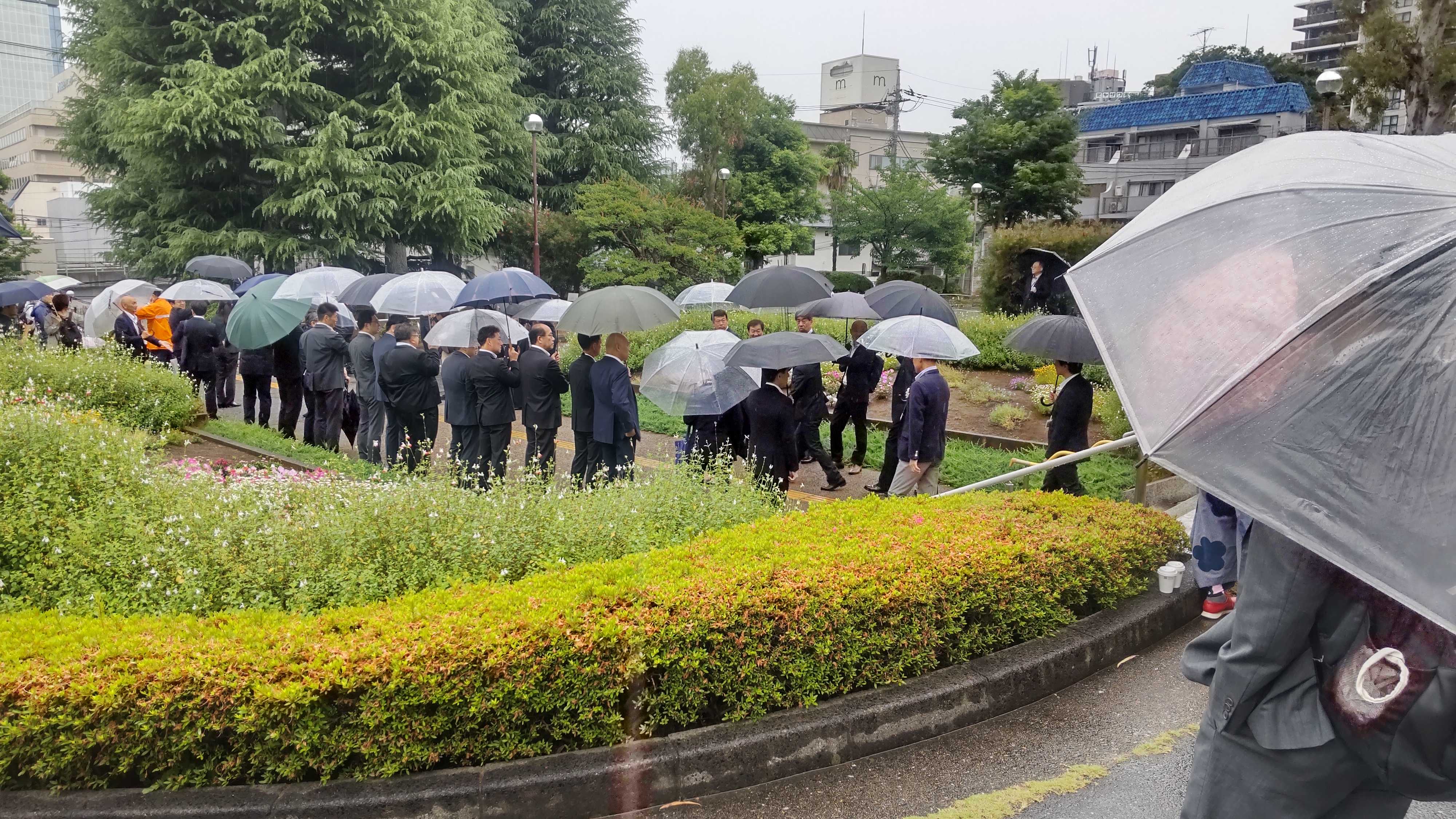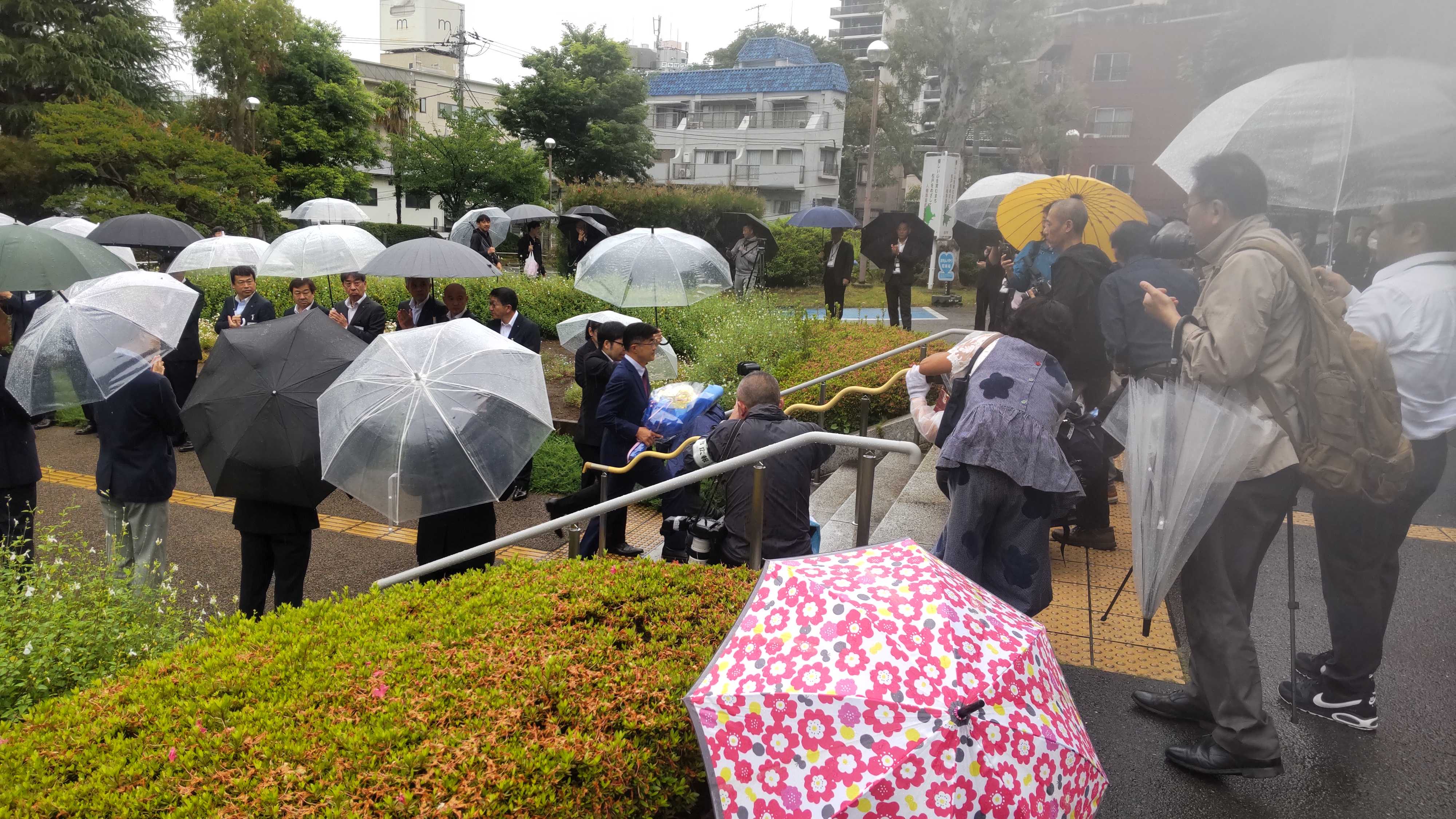 市役所職員以外の一般市民も雨の中、多く確認出来ました。