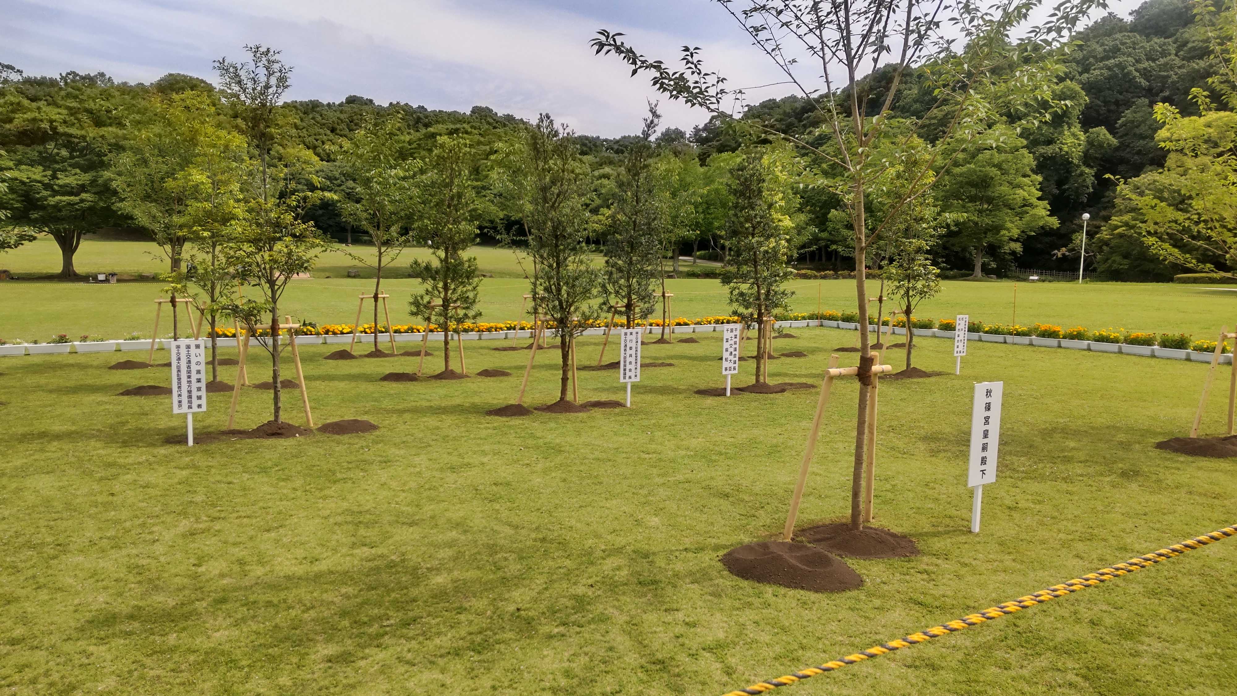 「みどりの愛護のつどい」での秋篠宮夫妻の記念植樹
