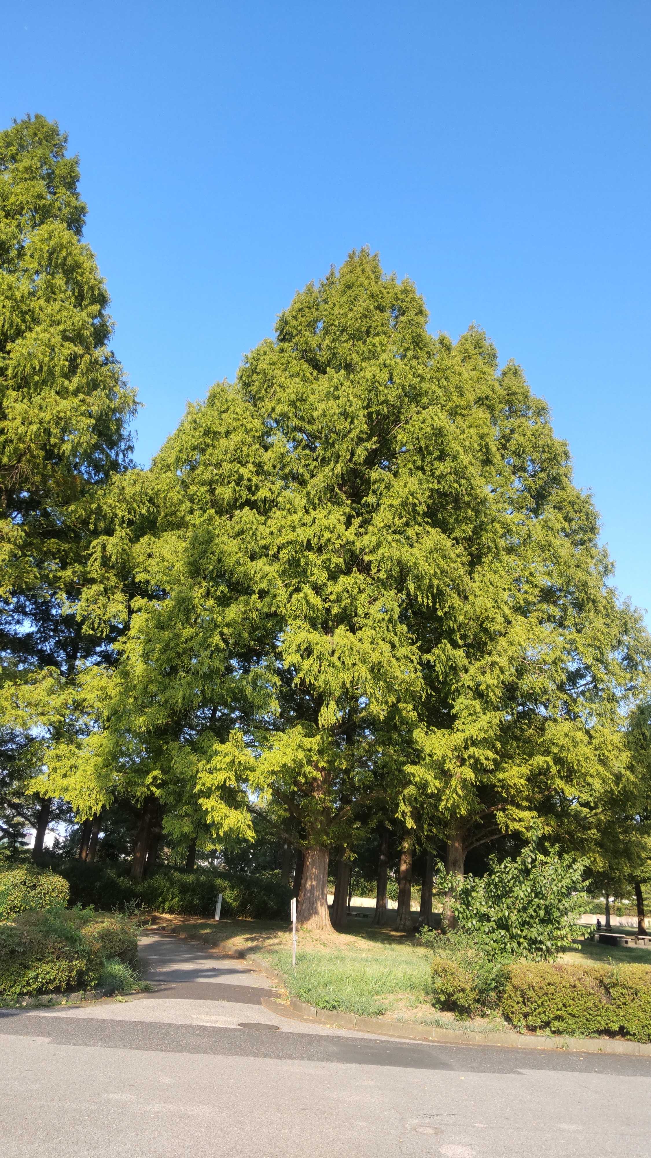 都立水元公園のポプラ並木はまだ全く色に変化はありますせん。