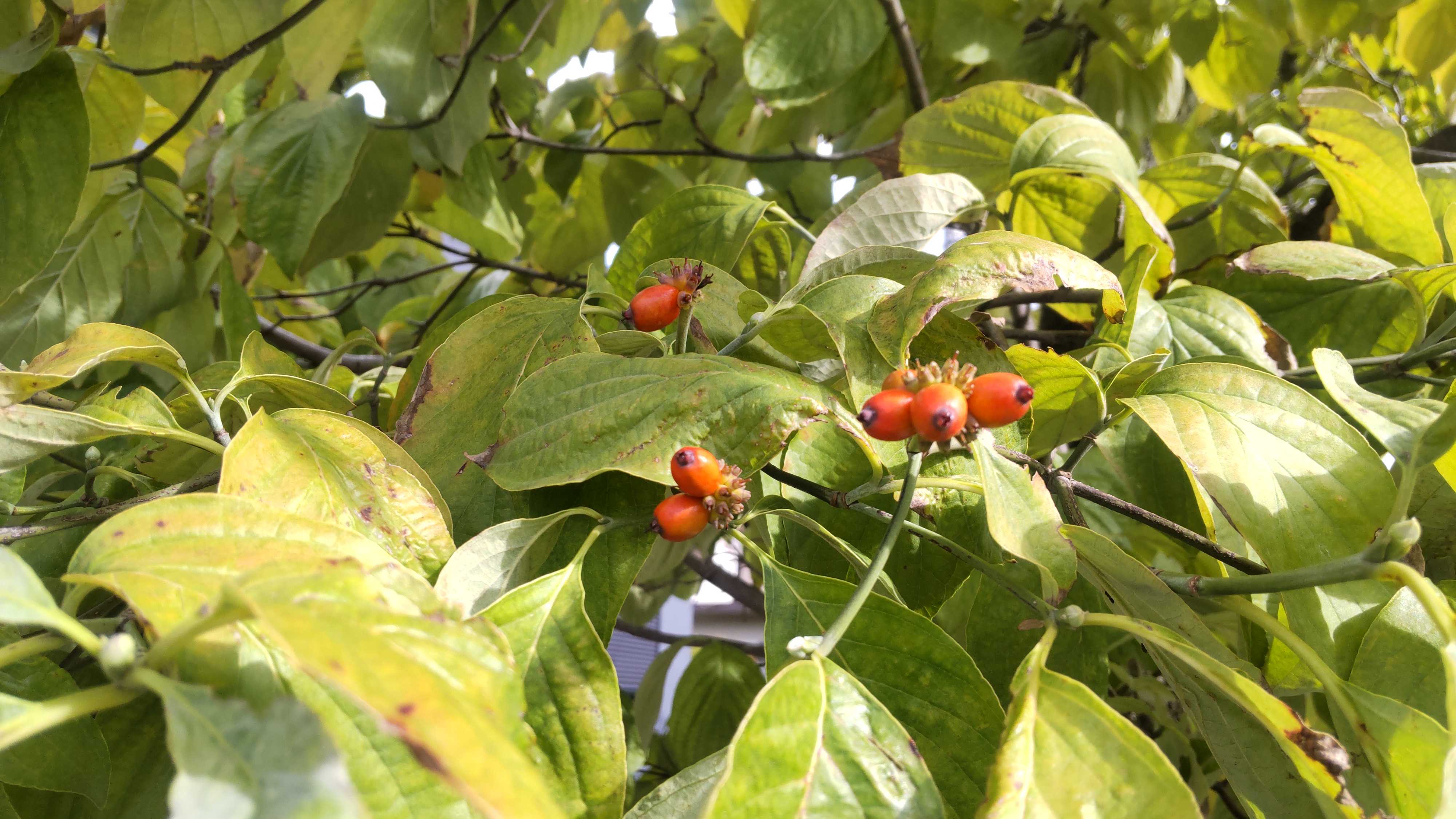 ハナミズキの実も赤みが増します。