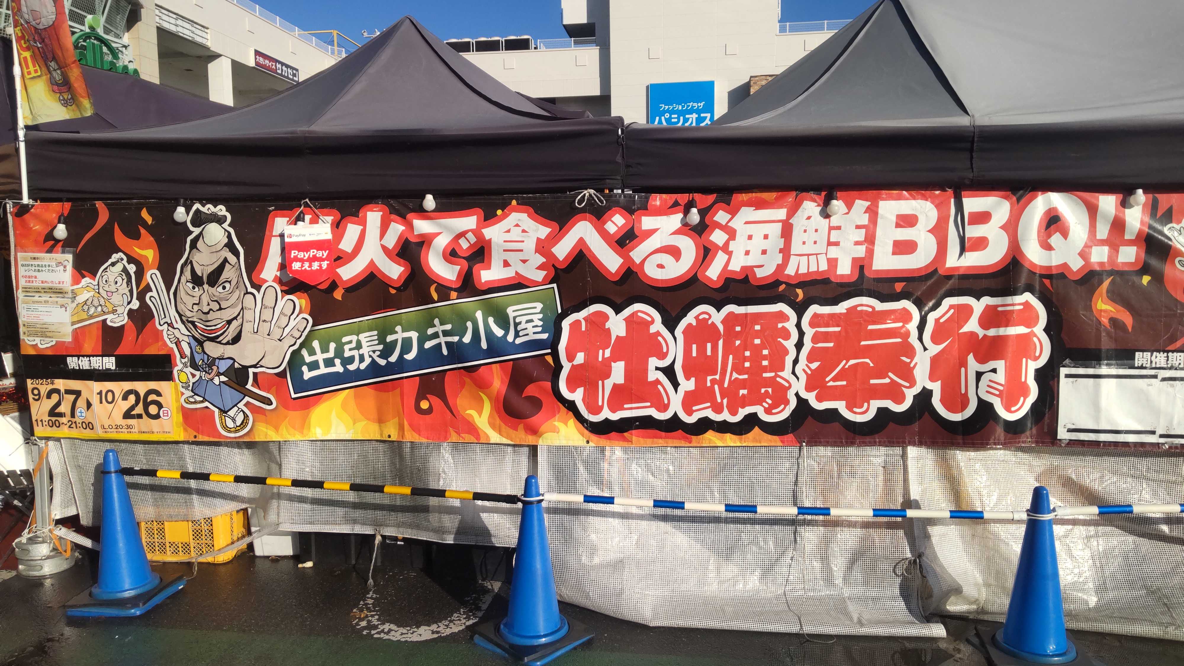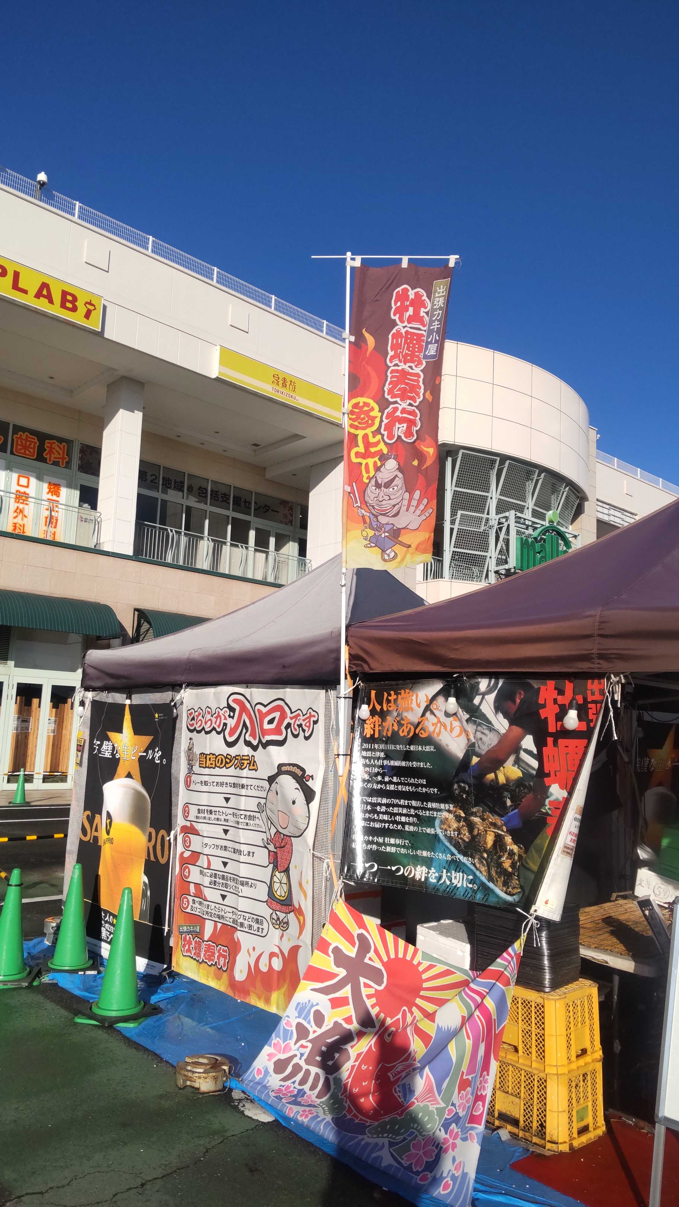 こちらは柏市のショッピングモールの駐車場で1ヶ月限定の牡蠣小屋です。