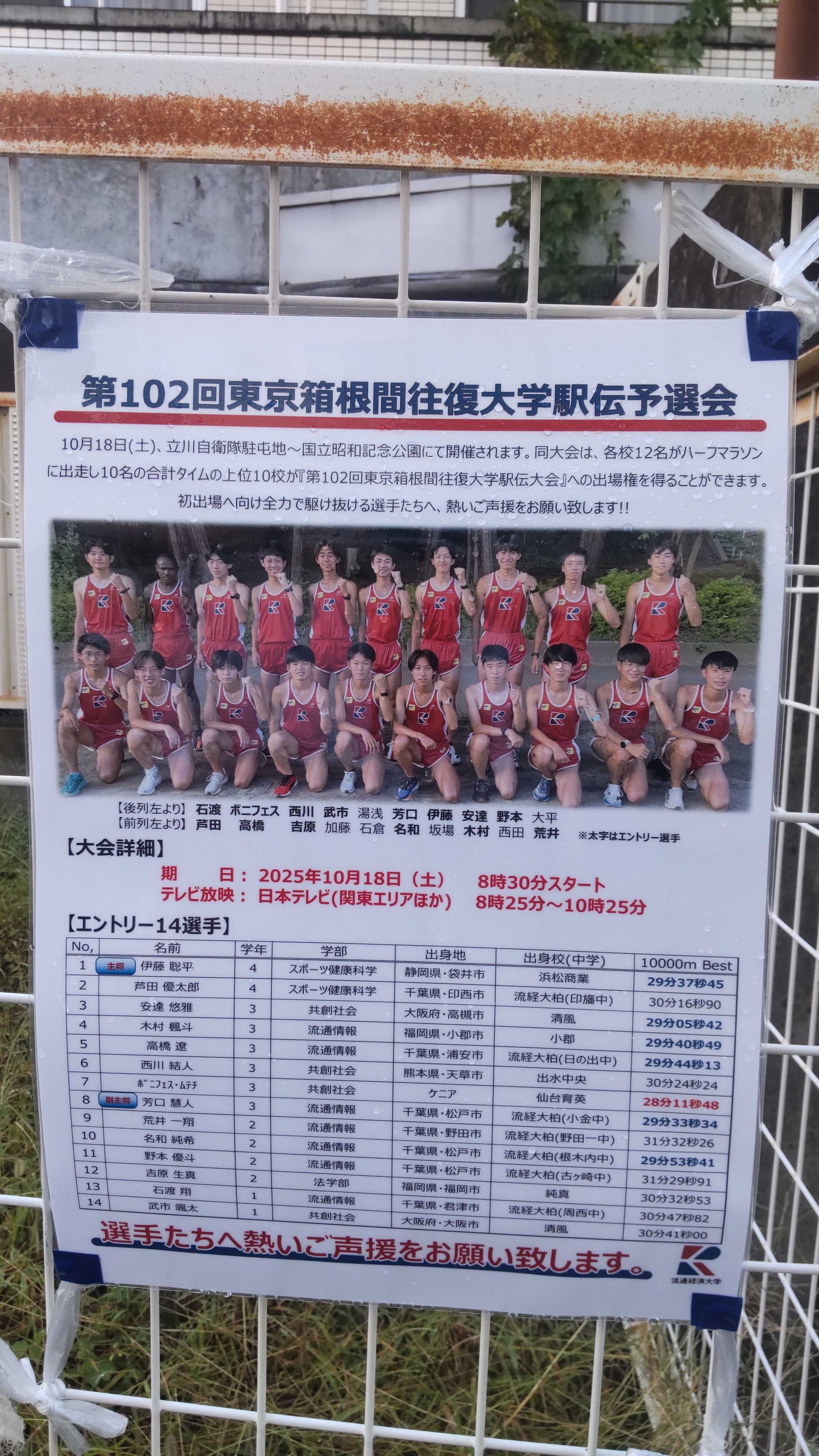 地元の新松戸からは流通経済大が出場します。
