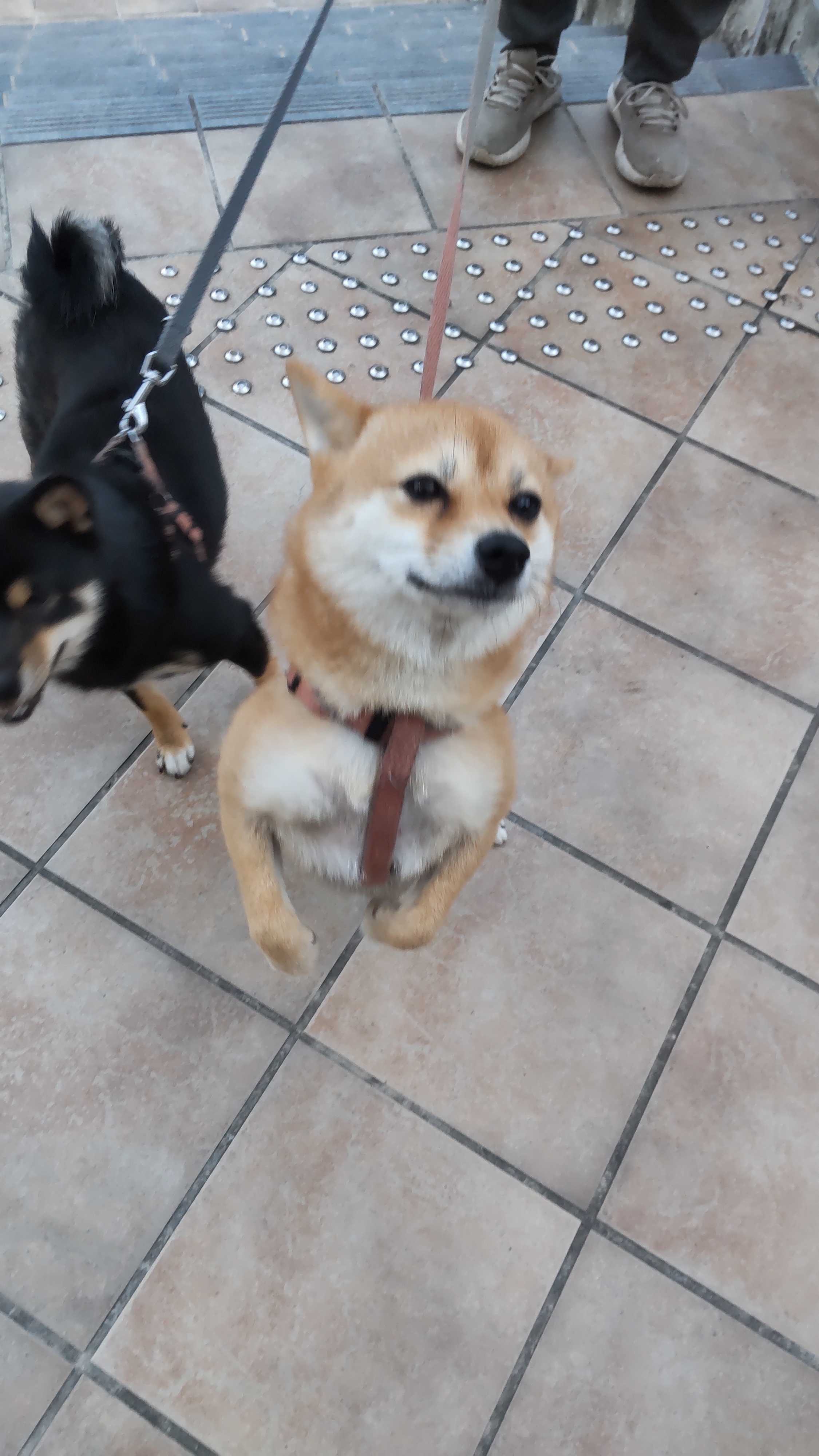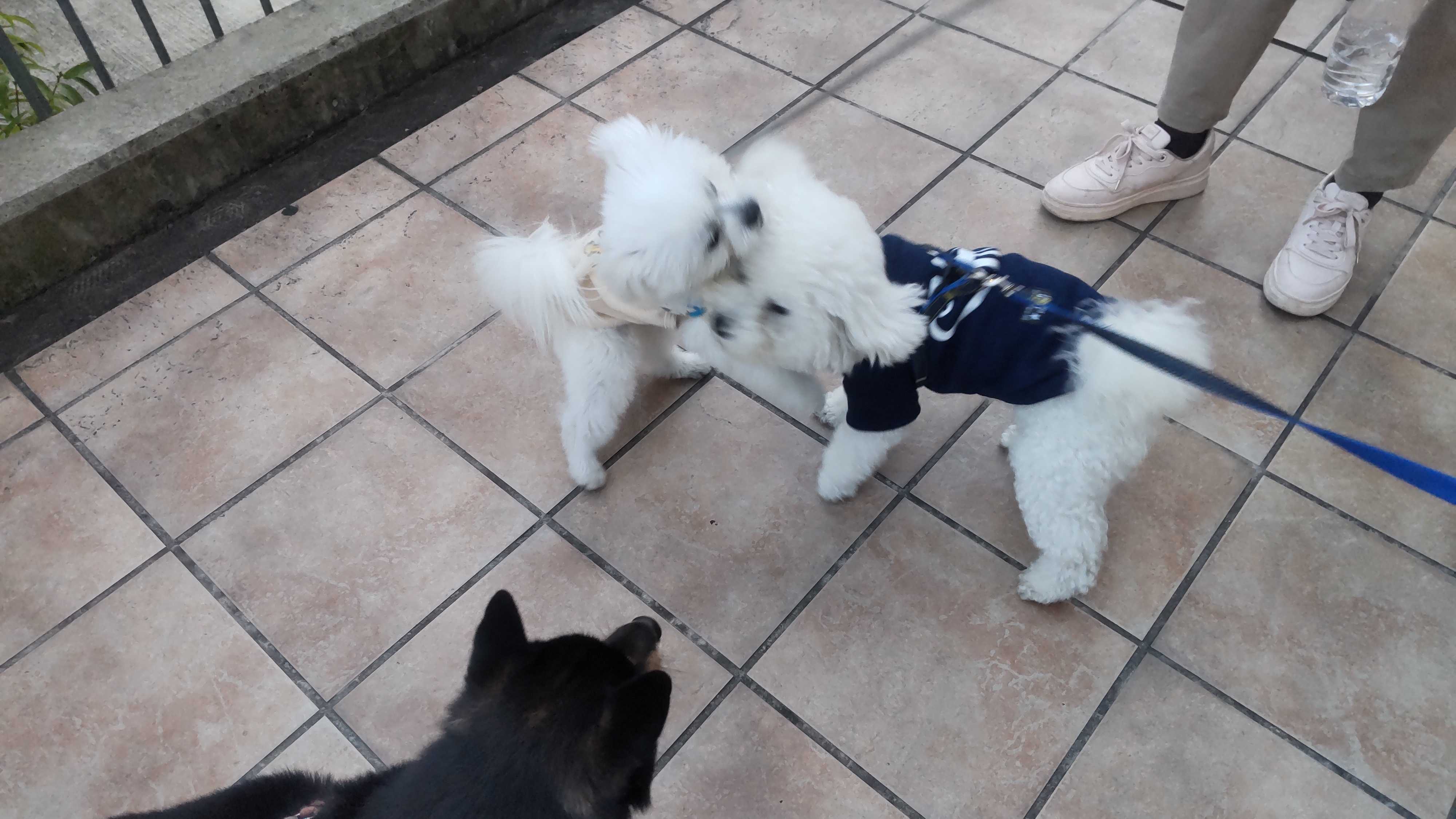 最初はコハクとレオンの2匹でじゃれていましたが、すぐに豆シバの茶色と黒色が来ました。