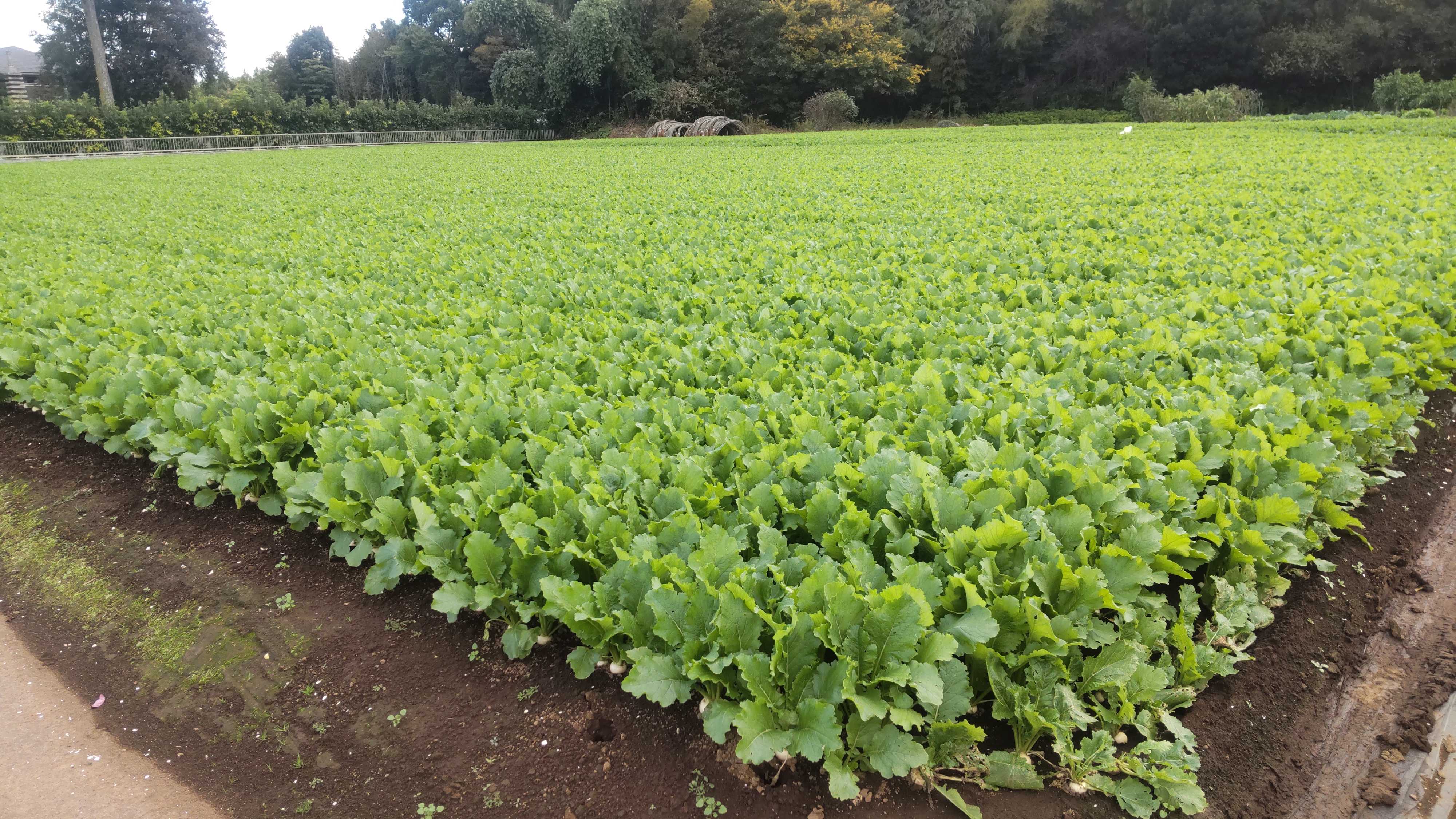 写真はカブの畑です。広い敷地です。