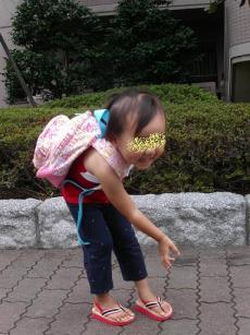 これから公園に行きますトップスはKLC 後ろが可愛くて好きです(私が)のんたんは「うーちゃん」の絵が描いてあるので好きですボトムはこれまたお下がり 後ろアップヾ(≧▽≦)ノ イヒヒヒー♪ 涼しそうです~ぅ