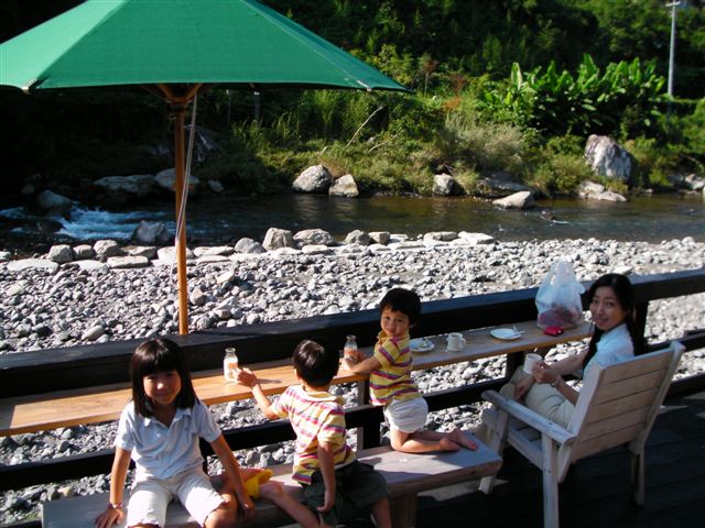 この週末(日・月)と馬路村に遊びに行ってきました。高松にいる従兄弟が毎年遊びにきているとのことで、お誘いをうけ今回合流することに!さて、高知には住んでいるものの馬路村は恥ずかしながら今まで行ったことのない場所なので実は子供よりも楽しみに ナビの指示通りに進むと、川が! そして、どんどんキレイな色に 景色も最高に!(田舎に) テンションもに 今回遊んだ川原は泊まって遊ぶには最高の場所でした。なかなか目の前が遊べる綺麗な川原っていうのは経験したことがないと!・・・・(経験不足?) 残念なのは、虫取りがいまいち・・・街燈の下も、トラップもかぶとのメスのみだったのが残念だったかな 川に仕掛けたトラップには、ハヤとエビが!今回は観察のみで逃がしました(ちょと数が・・)・・・・いつもは油の中へ 朝食後のコーヒータイムもちろん子供たちは・・・・・・・・・ごっくんですこの二日間で何本ごっくんを消費したか馬路村温泉かなり気に入りました!!