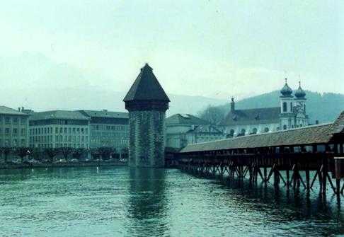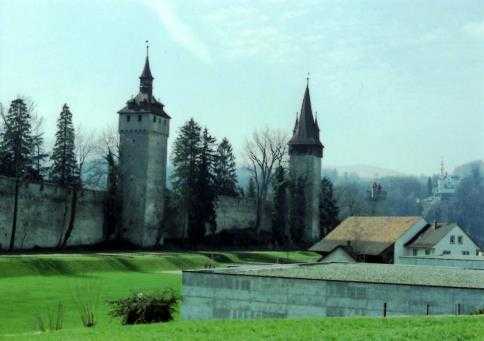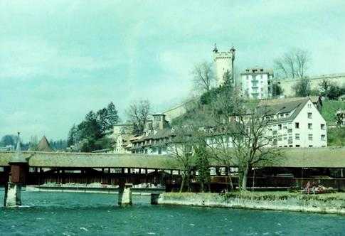 これも調べるのに時間がかかりましたが、ベルンからの夜行列車に乗って翌朝着いたルツェルンのムゼック市壁の写真だと思われます。