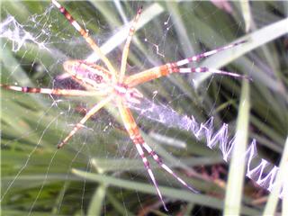 最近見かけくなったものに蜘蛛があります。水田自体見かけません。トンボや蚊を捕まえようとまっているんでしょう。あべこべに蜂の餌食になりやすいです。
