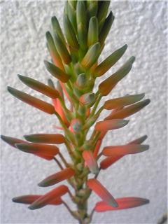 アロエの花です。やげどをしたときや怪我で患部を引き締める時に使います。1年に1回だけこんなかわいい花が咲きます。とげとげからは想像できません。