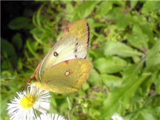 モンキチョウです。早いのでなかなかつかまりません。撮影はもっと大変です。草原にこの蝶が来ると夏本番です。モンシロチョウと似ていますが縁が赤く、羽は黄色い綺麗な蝶です。