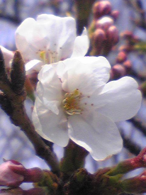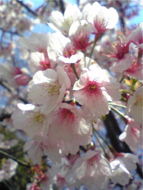 はな オオシマザクラ ヨウコウザクラ(陽光) 満開:オオシマザクラと山桜は満開、ヨウコウ桜は散り始めで綺麗に舞っていました。どこかにメジロがいます。大高緑地は他にヒガンザクラやフユザクラがまだ咲いていました。1.オオシマザクラ(大島桜)とはバラ科の植物の一種。学名はCerasus speciosa (Koidz.) H.Ohba, 1992、春に白色の花を多数つける、野生種のサクラの一種。花と葉が一緒に出て緑色の葉。 2.は名前がよくわかりませんが、公園の案内板の花で一番近いものはこれです。ヨウコウザクラはアマギヨシノとカンヒザクラを交配して、作られた栽培品種です。ソメイヨシノに先駆けて咲き、花の色が濃く、大きいのが特徴です。濃紅紫色 花 期 3月中旬
