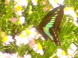 アオスジアゲハです。飛び出す瞬間の蝶はすばらしい。もう直ぐ卵を産んで幼虫が出てきます。クスノキの葉を食べ大きくなります。小学校や公園の葉を見るとところどころ食べられた後があります。3mぐらいの木で5匹ぐらいは飼えます。もっとも、小鳥がついばんでいってしまい、蛹になるのは2つか3つです。